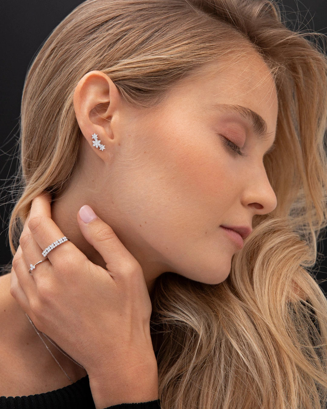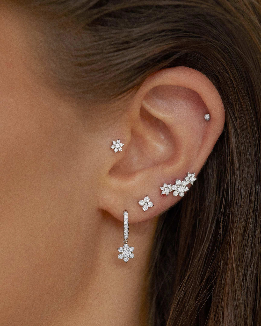 - Brinco de piercing Diamond Rosette Trilogy Climber