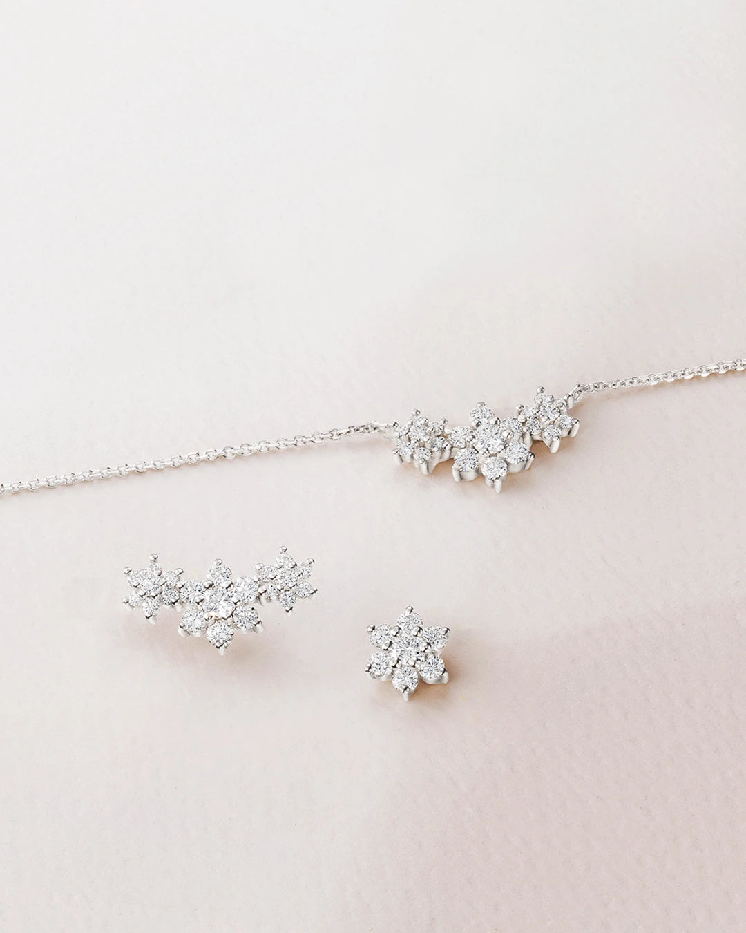 Brinco de piercing Rosette Trilogy Diamond Climber em ouro branco 18K