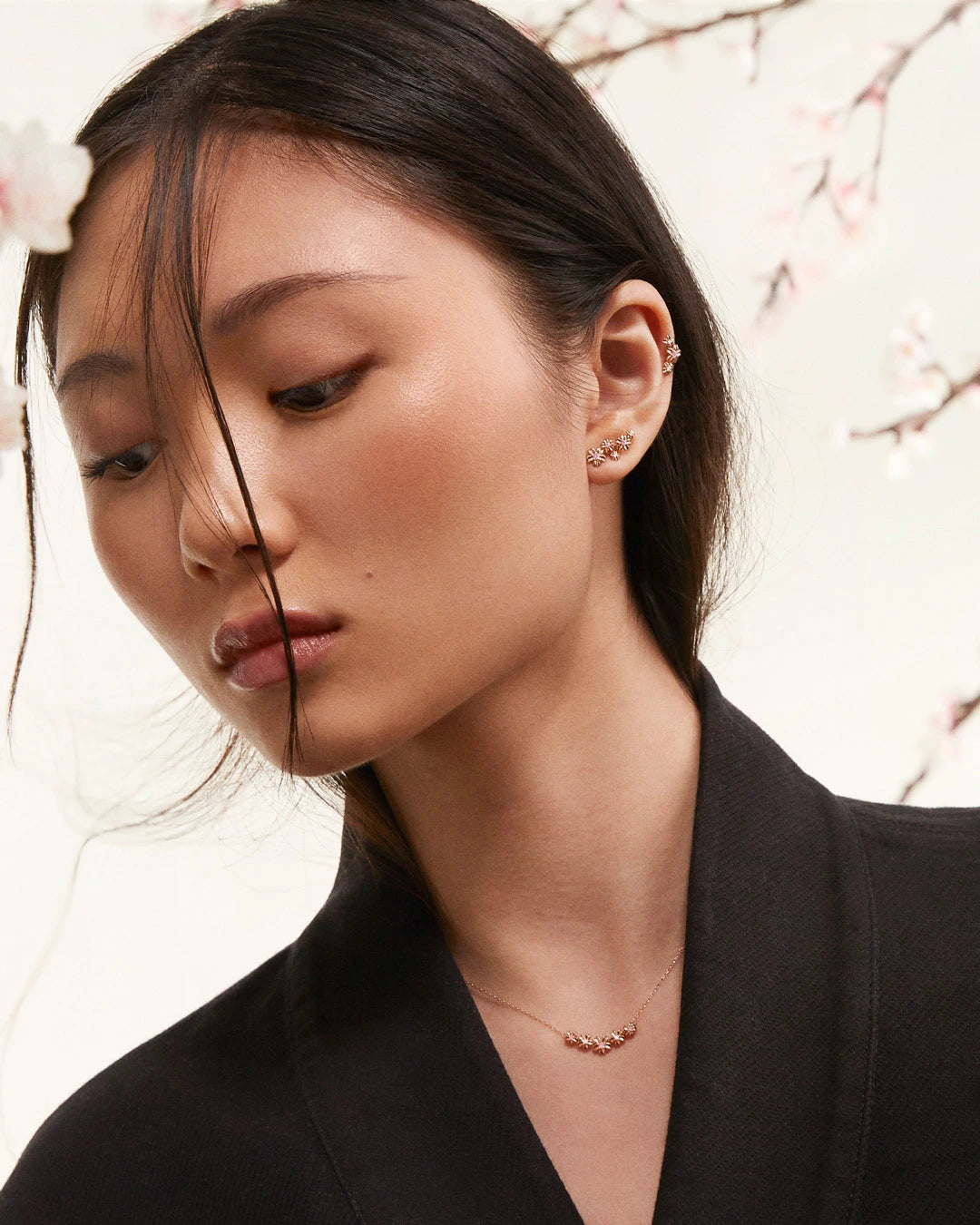 Descubra a magia das flores de cerejeira em Sakura, nossa coleção mais poética. O design das joias que a compõem apresenta um equilíbrio perfeito entre formas orgânicas e minimalismo, refletindo o esplendor da natureza em cada pétala delicada. Mergulhe em um mundo de sonho onde os tons suaves das safiras rosa e o brilho dos diamantes fazem de cada peça uma homenagem à beleza atemporal.