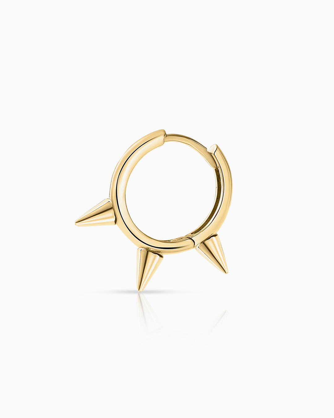 Brinco Piercing Spikes Três Mini Spikes em Ouro Amarelo 18 K