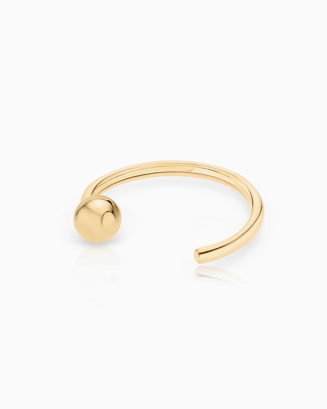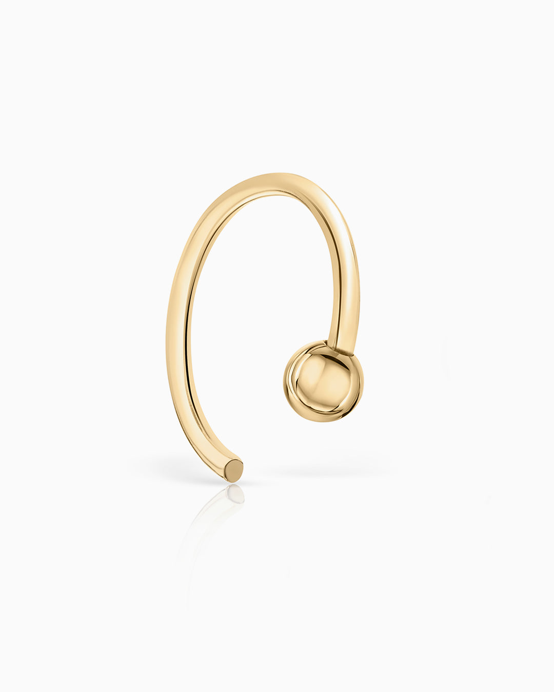Brinco piercing Twist feito em ouro amarelo 18 quilates. Original e ousado, o brinco piercing Twist vai virar peça chave no seu look de orelha. Seu design em espiral o torna um brinco perfeito para cartilagem, permitindo também que seja ajustado à hélice, septo, tragus, torre, snug, anti-hélice, bem como qualquer área do lóbulo. Este é um brinco perfeito para usar pela primeira vez, pois é feito de ouro 18 quilates e tem uma ponta longa que ajudará o piercing a cicatrizar facilmente. Possui fecho de rosca com uma delicada bola dourada que lhe dá o toque de modernidade que você procurava. Ouse misturar e crie um visual de múmia com orelhas! Junte-se à tendência da moda e crie um look para suas orelhas com uma nova geração de piercings de luxo!