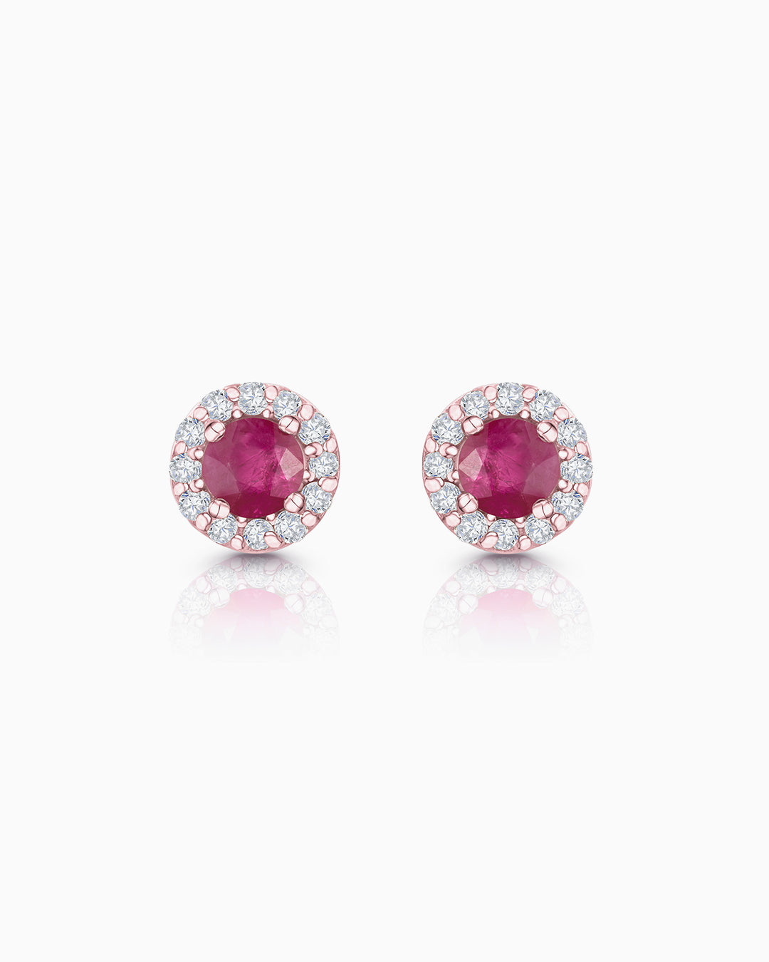 Brincos Anette Mini Rubi e Diamante em Ouro Rosa 18K