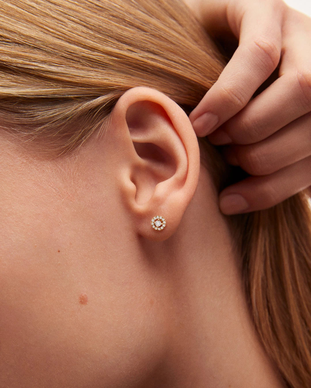 Inspirados na beleza misteriosa do céu noturno, os brincos Ariadne fundem simbolismo antigo com sofisticação contemporânea. Ariadne, princesa de Creta, ajudou Teseu a escapar do labirinto do Minotauro por meio de uma coroa luminosa. Segundo a lenda, este símbolo de amor e coragem foi posteriormente lançado ao céu, formando a constelação de Corona Borealis. O design dos brincos reflete o esplendor desta magnífica tiara de estrelas graças a um requintado solitário de lapidação brilhante, acompanhado por um halo de diamantes em forma de círculo concêntrico. O espaço entre a pedra central e o halo de luz que a envolve cria o efeito óptico de uma coroa flutuante, criando uma silhueta etérea e delicada. Feitos em ouro 18 quilates, os brincos Ariadne são uma homenagem à natureza universal das histórias que contamos para explicar os mistérios do universo e sua conexão com nossas vidas. Uma joia que combina elegância atemporal e brilho eterno, perfeita para revelar os poemas escondidos nas estrelas.