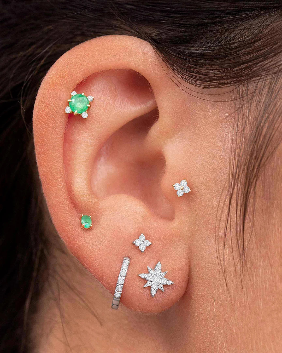 Brincos Compass Rose em ouro branco 18 K