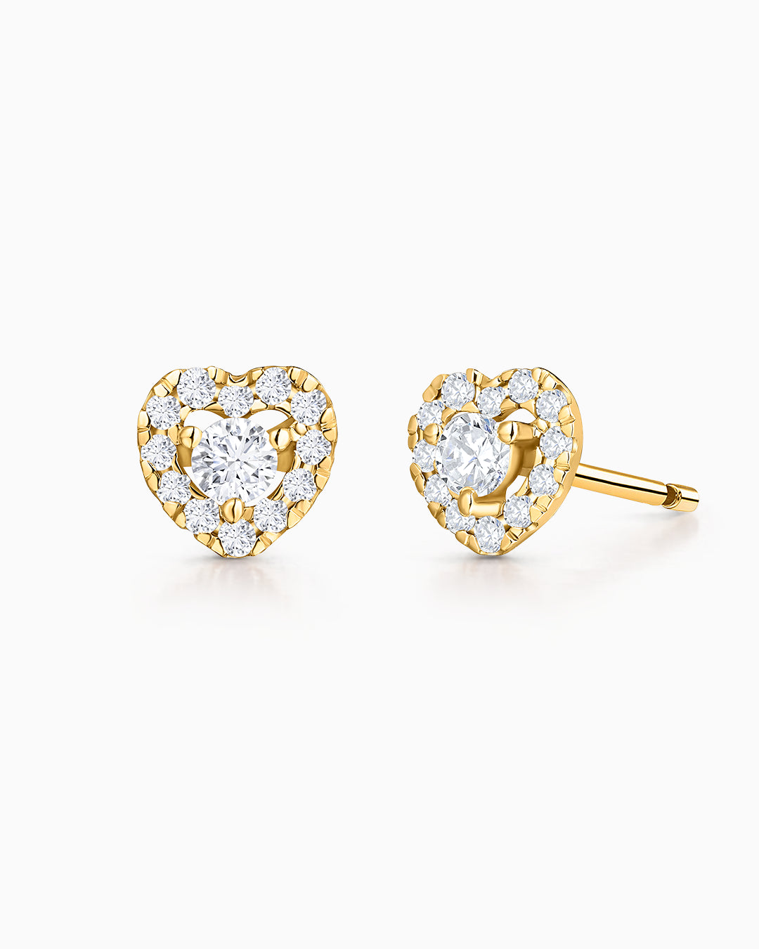 Brincos de diamante Ariadne Heart em ouro amarelo 18K