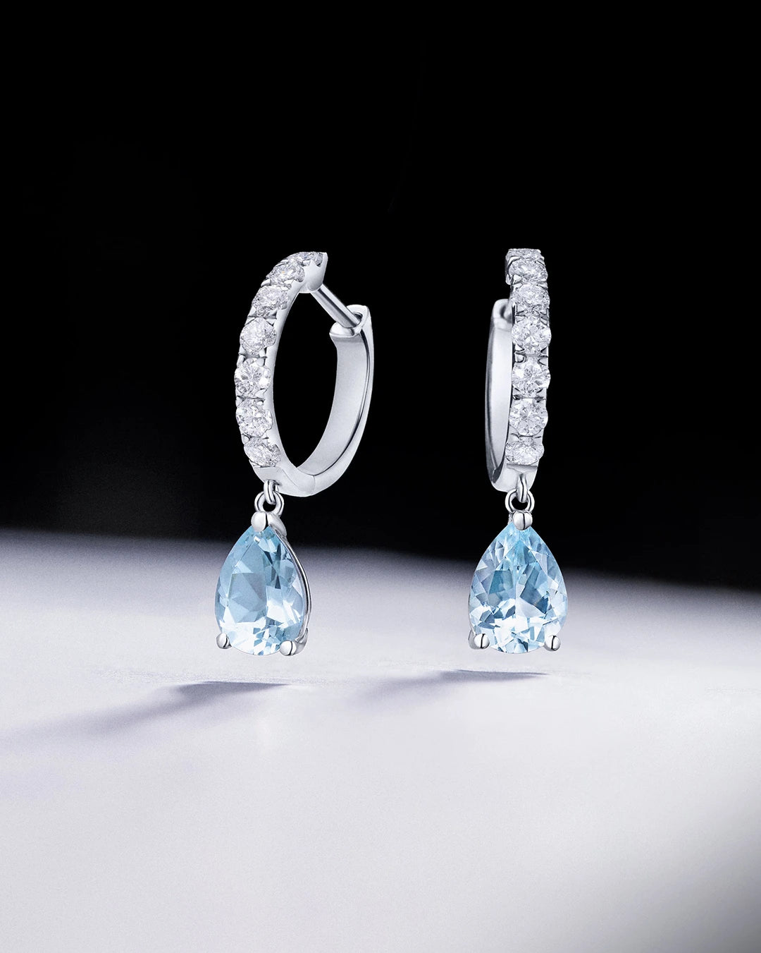 Brincos de água-marinha e diamante Brooke em ouro branco 18K
