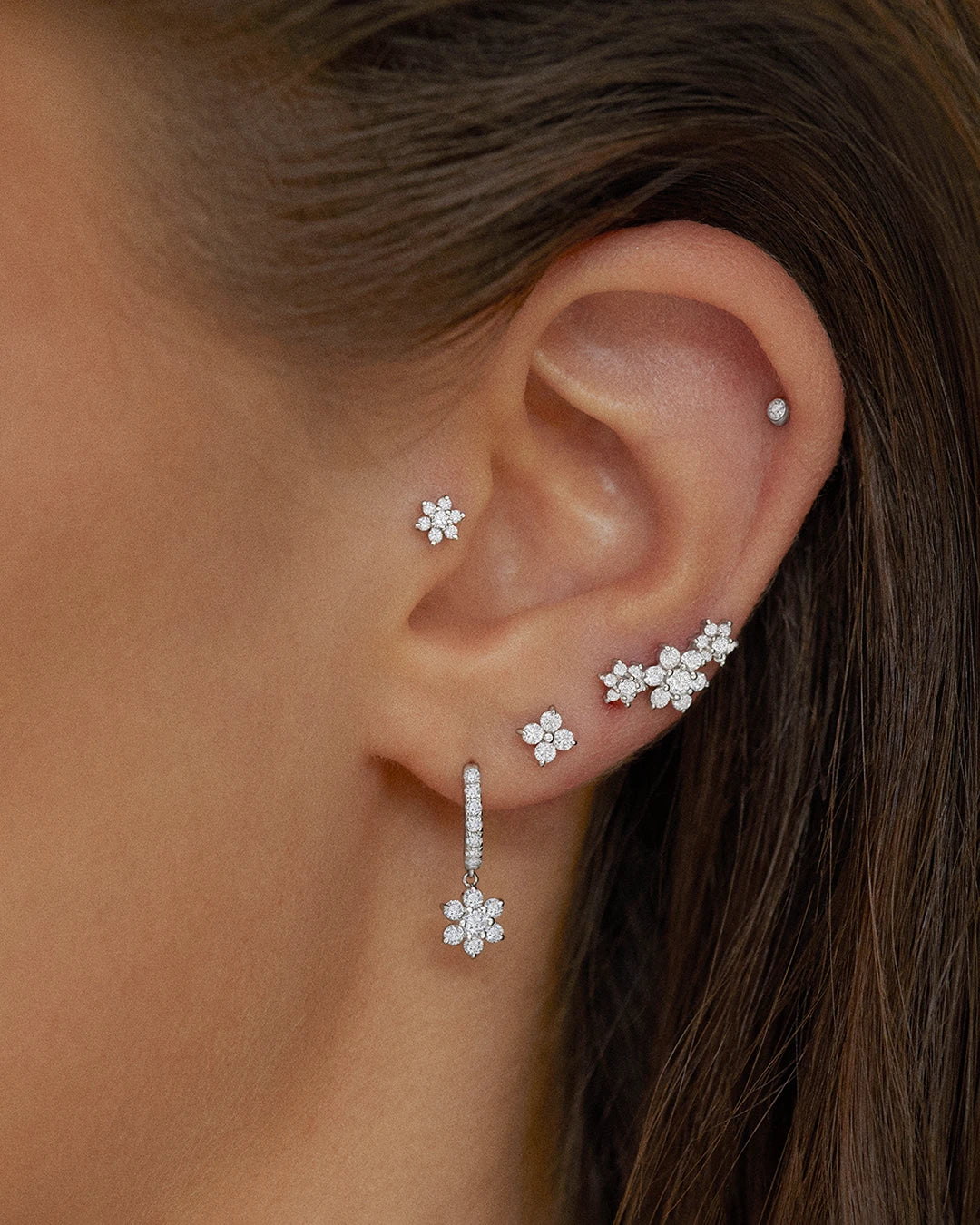 Brincos de argola completa em formato de roseta em ouro branco 18 quilates com diamantes. Os brin...
