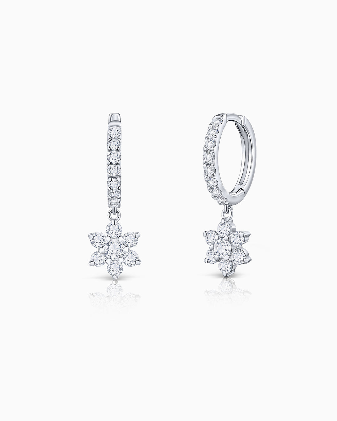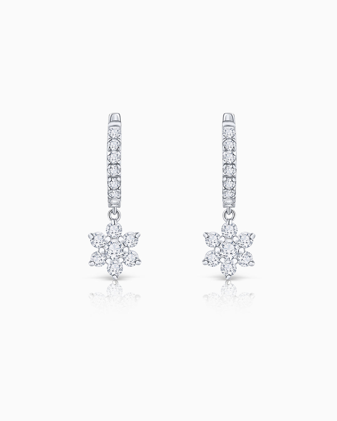 Brincos de argola completa em formato de roseta em ouro branco 18 quilates com diamantes. Os brincos Rosette fazem parte da nossa coleção mais especial. Inspirado nas delicadas gotas de água que refletem a luz do amanhecer em um jardim de rosas, o brilho da manhã e as formas delicadas das pétalas acrescentam personalidade a uma coleção que celebra a beleza da natureza. Tão originais quanto elegantes, o design destes brincos é composto por um delicado arco e uma roseta suspensa no ar que evoca o formato das pétalas de uma rosa. Os diamantes que os cobrem têm um peso total em quilates de 0,56 Cts. que geram um brilho único, tornando-os brincos ideais para qualquer ocasião. Combine-as com as outras peças da coleção Rosette e crie um visual total único. Os brincos Rosette estão disponíveis em versões adicionais de diferentes pesos em quilates, sem argolas.