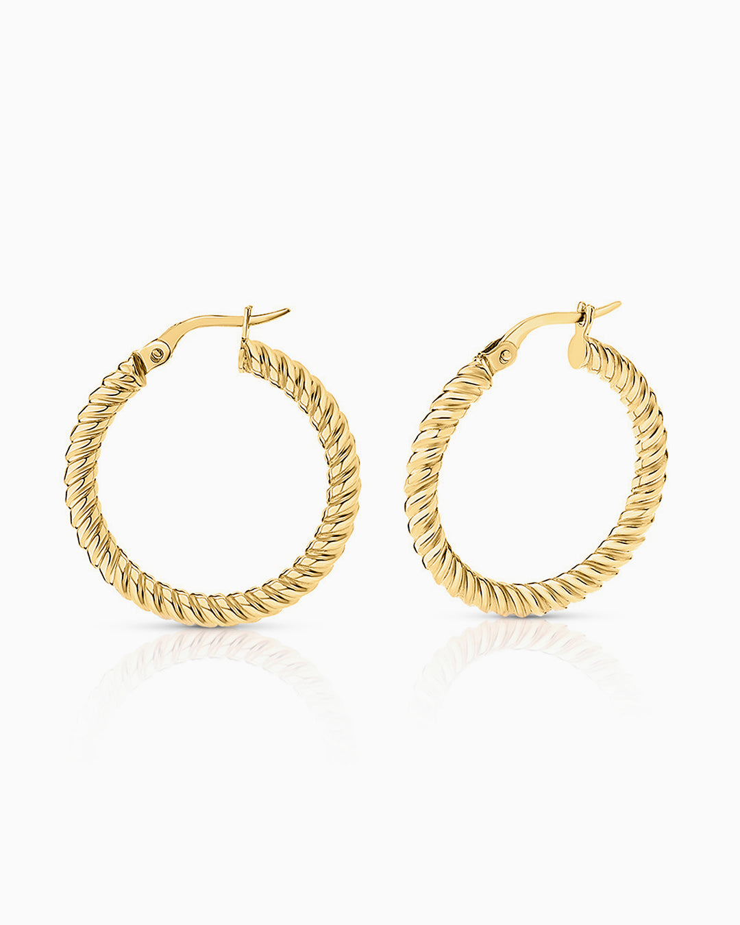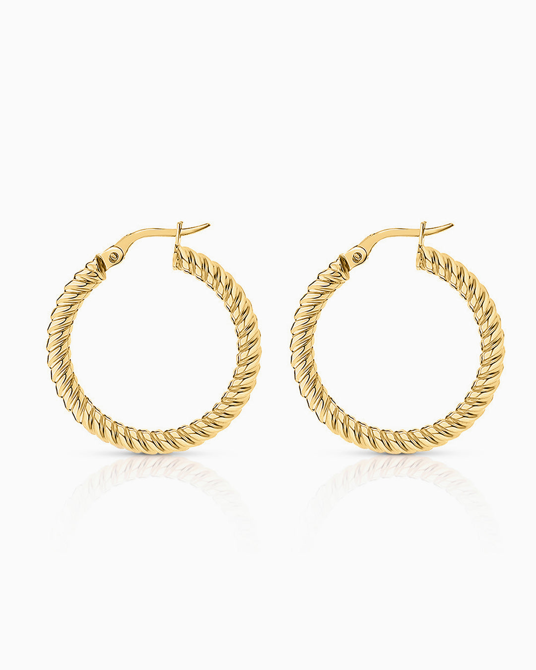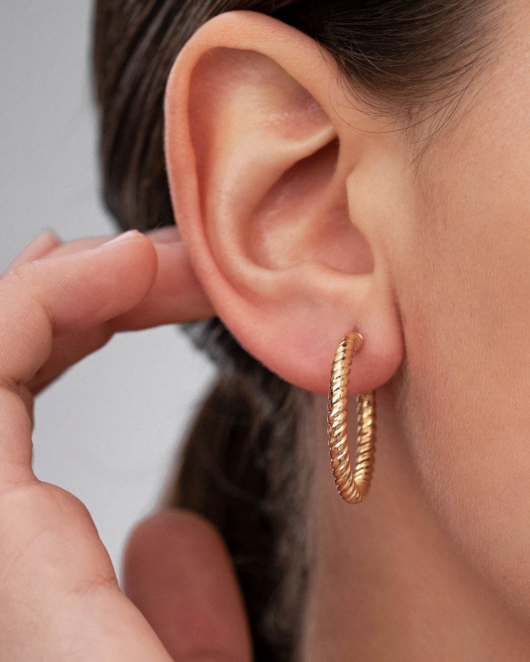 Os brincos de argola Gallon são um item básico que nunca sai de moda. Inspirados no design clássico de argola, os argolas Gallonados dão um toque especial ao seu design em formato de espiral que atrai luz com o movimento do brinco. São brincos de tamanho médio-grande, medindo 20 milímetros de diâmetro. Feitos de ouro amarelo 18 quilates, estes brincos elegantes incluem um fecho de estilo catalão que os torna confortáveis de colocar e tirar, além de seguros. Apesar do tamanho, são argolas muito leves que complementam qualquer look.