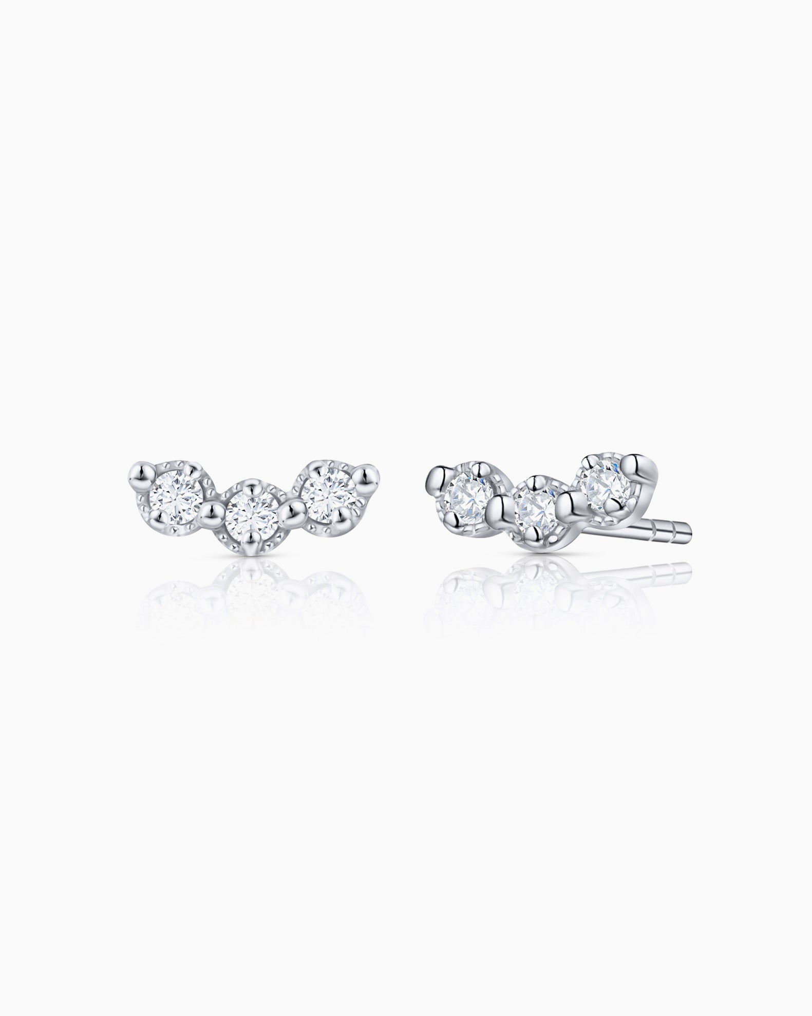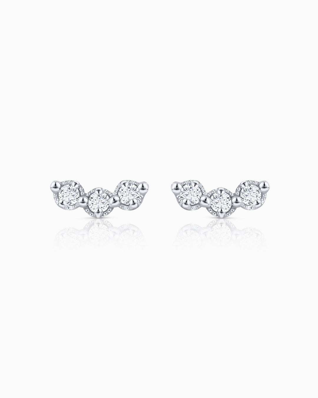 Brincos de diamante Milgrain Trilogy em ouro branco 18K