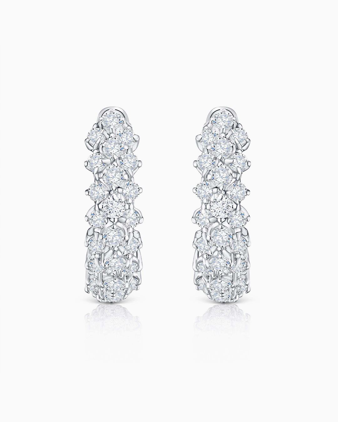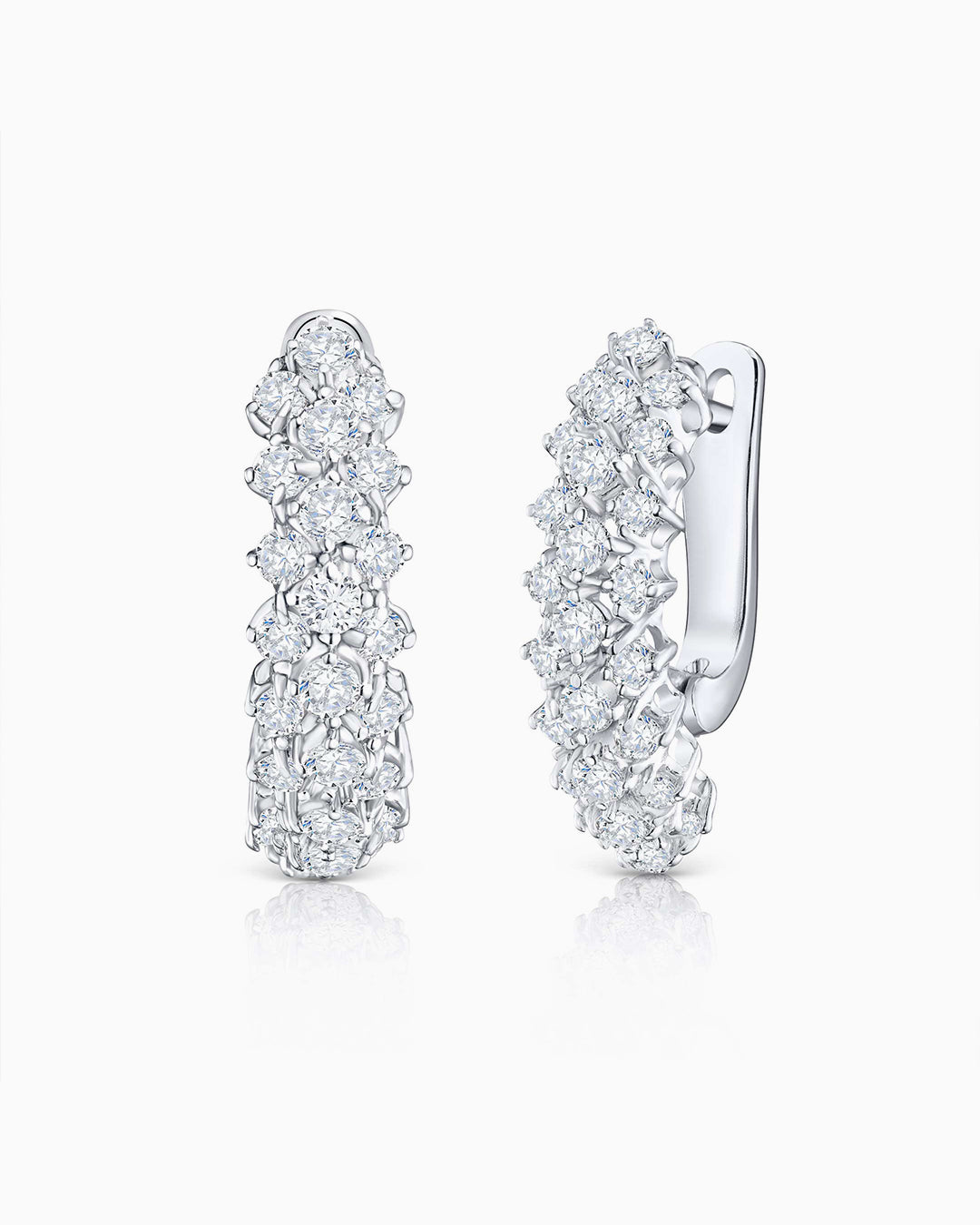 Brincos siderais feitos em ouro branco 18 quilates. Parte da coleção Moonlight, esses brincos são tão mágicos quanto originais, inspirados no efeito maravilhoso criado pelas nuvens, estrelas e planetas da galáxia. Os brincos Luz de Luna Sideral são uma homenagem ao know-how da joalheria em uma peça que é pura fantasia. Esses brincos de argola originais são caracterizados por suas três fileiras de diamantes engastados em garras, criando um delicado pavé de alta joalheria que culmina em uma argola que abraça o lóbulo. Eles têm um fecho especial e totalmente seguro que melhora o conforto e o ajuste à orelha. Uma obra-prima projetada para fazer parte dos momentos mais inesquecíveis.
