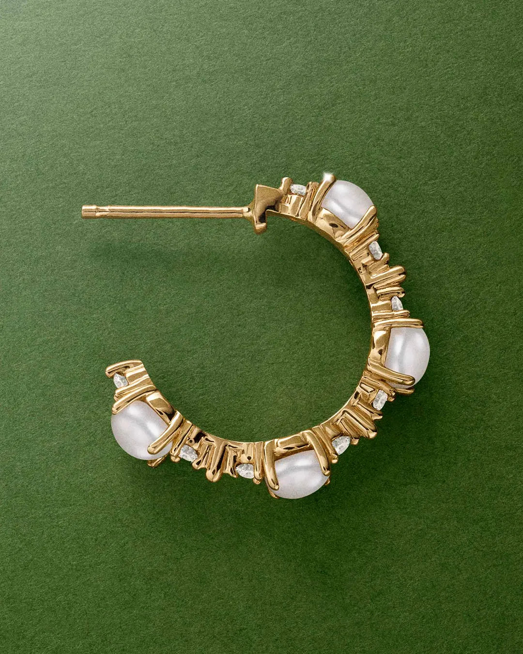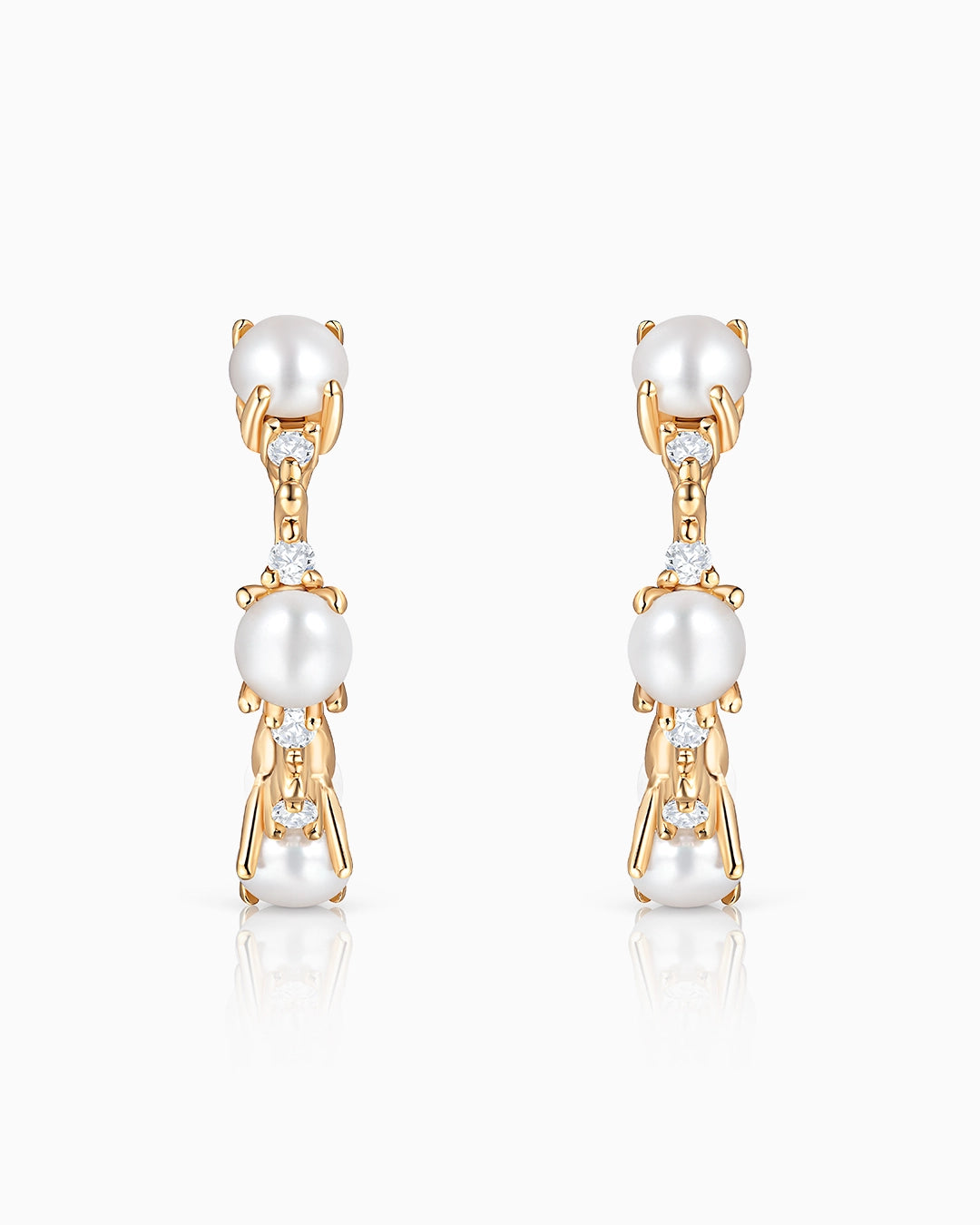 - Brincos de meia argola com pérolas e diamantes Midnight Holly