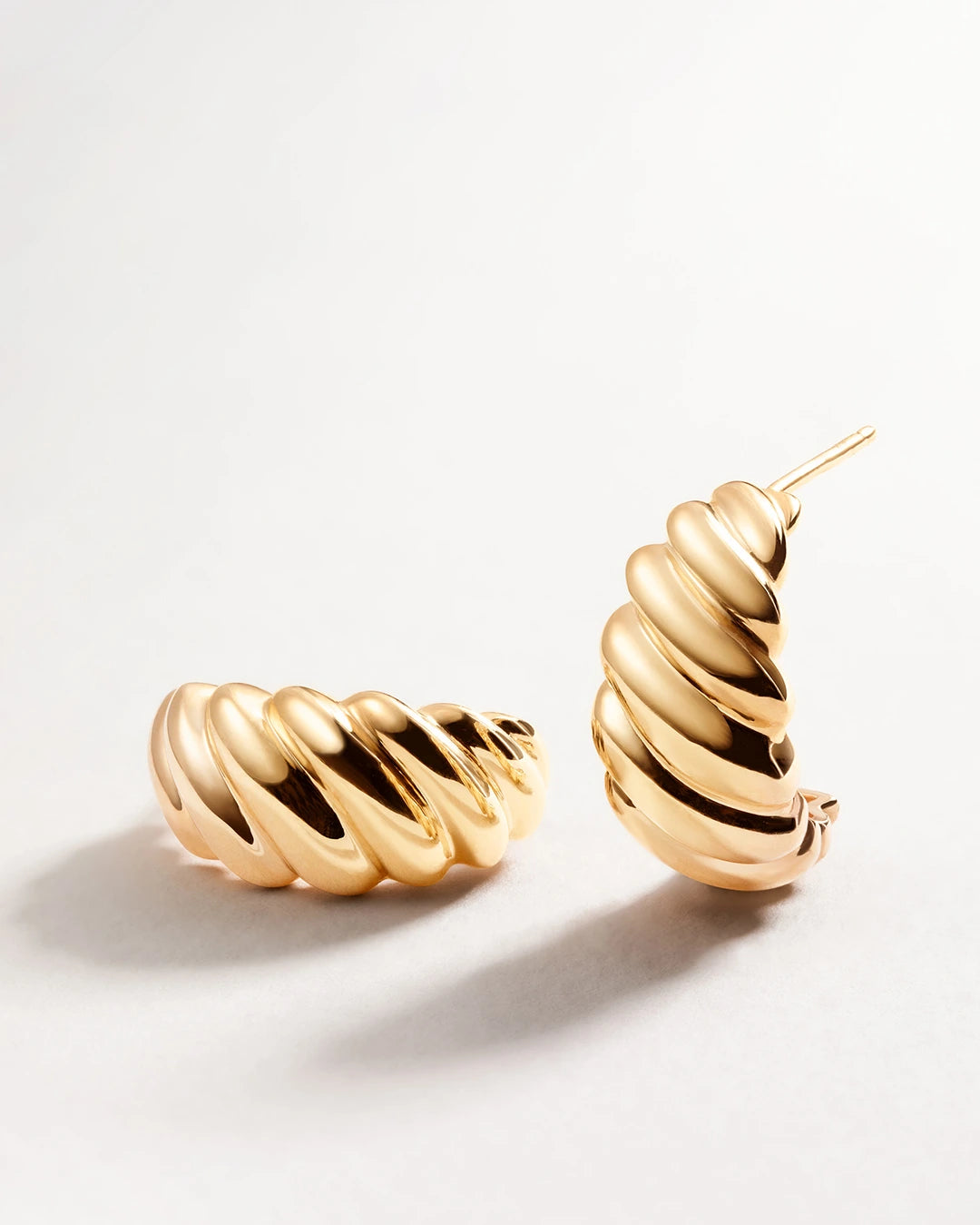 Brincos Duomo Twist feitos em ouro amarelo 18 quilates. A coleção Duomo é inspirada na cúpula nervurada, um elemento arquitetônico imponente e de grande valor simbólico. Nossos designers queriam capturar a sensação de admiração que essas maravilhas estruturais provocam, bem como a profundidade de seu impacto cultural. Para isso, eles optaram pelo uso de linhas geométricas e uma silhueta retorcida, que refletem perfeitamente a sinergia entre arte, história e design. Como resultado, os brincos Duomo Twist representam impecavelmente o caráter inovador da Mumit e as proporções harmoniosas que distinguem nossas criações. Graças à sua personalidade marcante e versátil, elas oferecem a possibilidade de elevar todos os seus looks. Combine-os com os diferentes tipos de pulseiras e anéis Duomo para criar um contraste deslumbrante de texturas e obter umolharuma tendência que se adapta a qualquer ocasião.