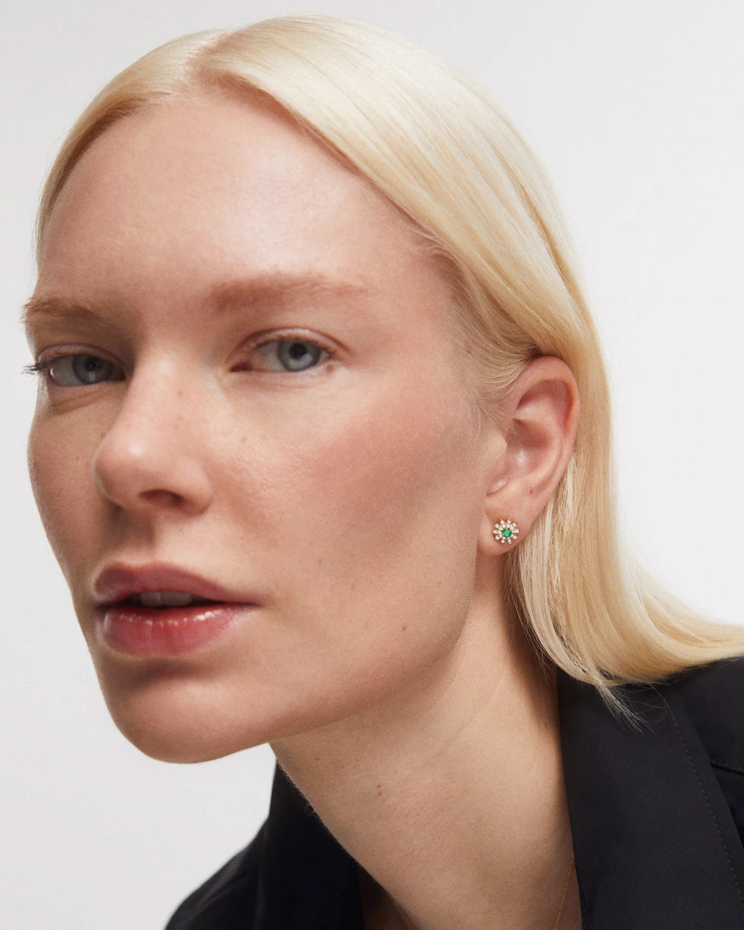 Brincos de esmeralda e diamante de Florença feitos em ouro amarelo 18 quilates. Florença recebeu esse nome em homenagem à famosa cidade italiana, famosa por sua tradição de ourivesaria que remonta aos tempos medievais. Esta coleção é inspirada nas joias que podem ser vistas em alguns dos retratos mais famosos da Galeria Uffizi, em Florença. Nelas, as damas renascentistas da cidade aparecem adornadas com desenhos florais e as mais finas pedras preciosas da época. Nossos designers queriam refletir a beleza e a tradição dessas joias emblemáticas de Florença por meio de brincos em formato de margarida. Você reconhecerá o toque fresco e original de Mumit na inversão das cores tradicionalmente associadas a essas delicadas flores: o amarelo do ouro é encontrado no caule, o branco dos diamantes é mantido nas pétalas, enquanto o verde vibrante da esmeralda se torna o centro. Descubra a magia da Toscana em flor e eleve qualquer look com uma joia que exala história e requinte.