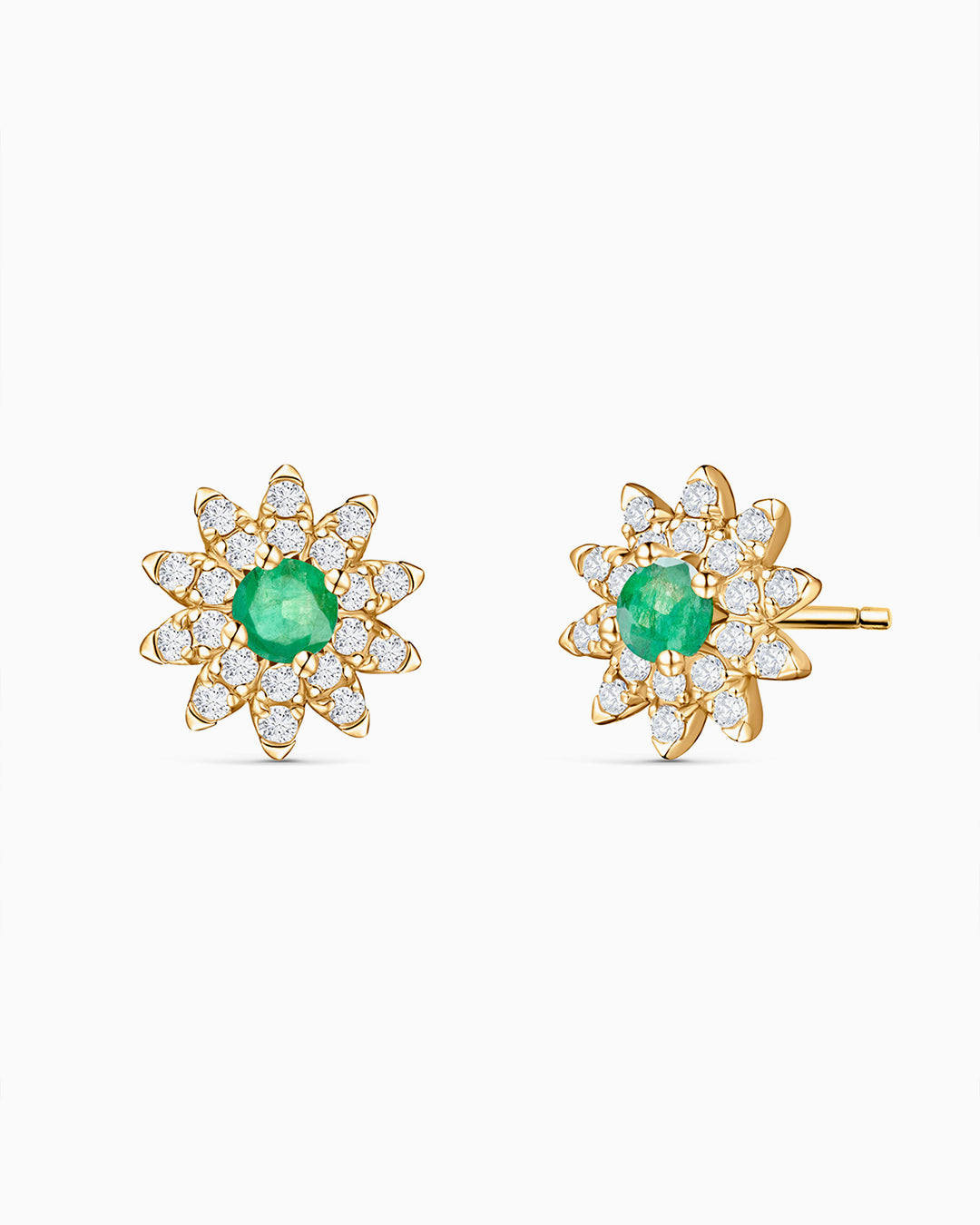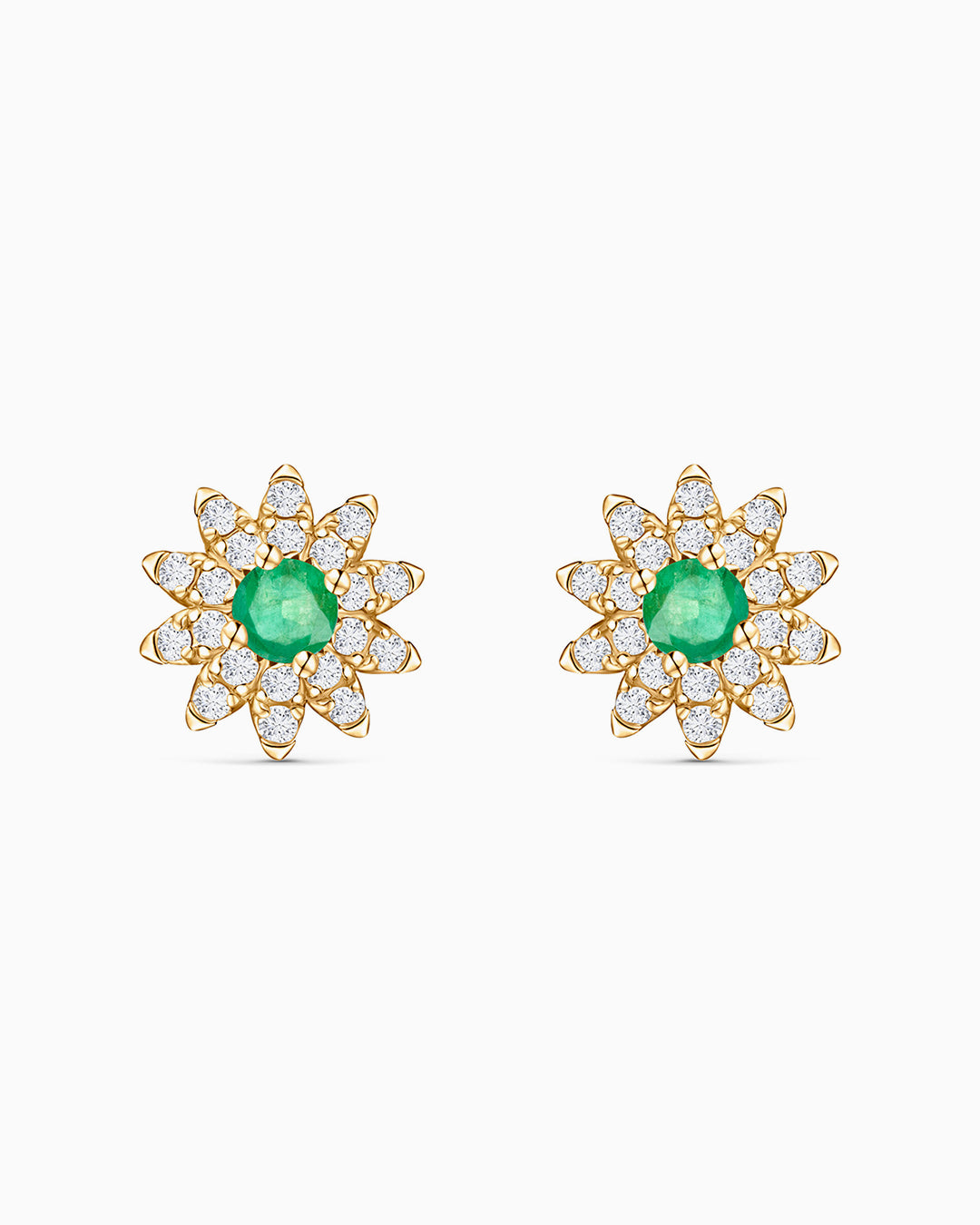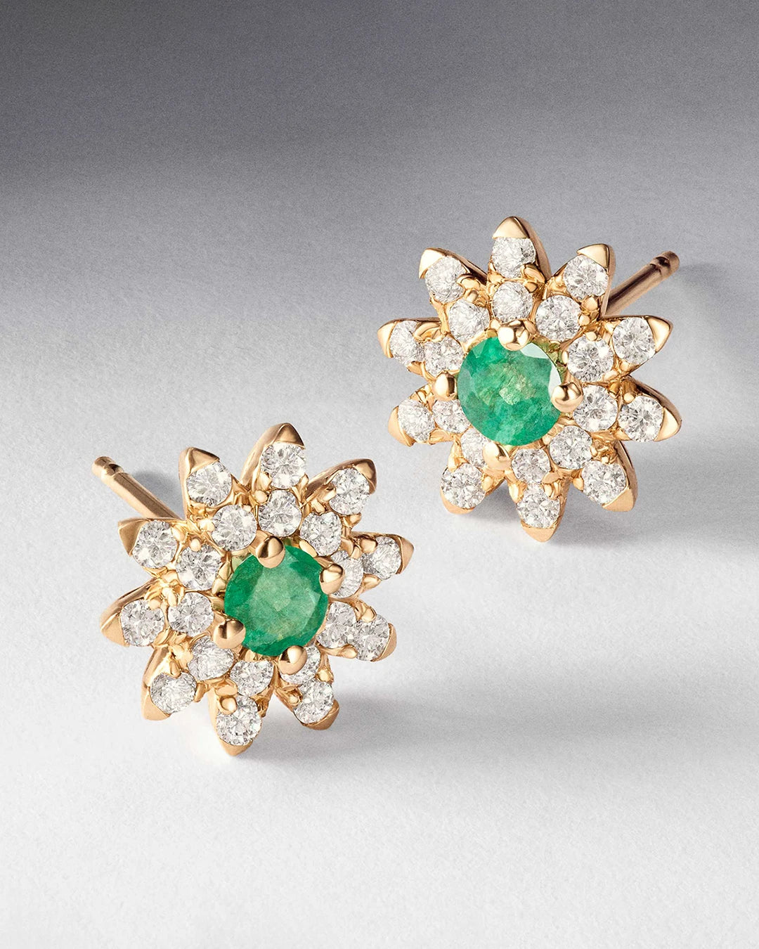 Brincos Florence Esmeralda e Diamante em Ouro Amarelo 18K