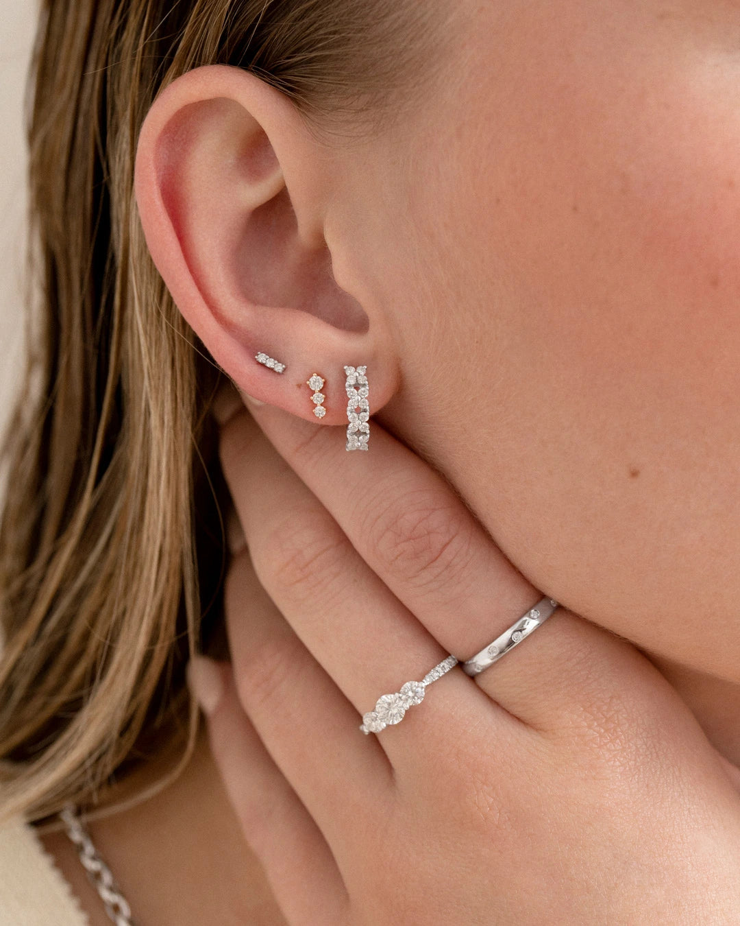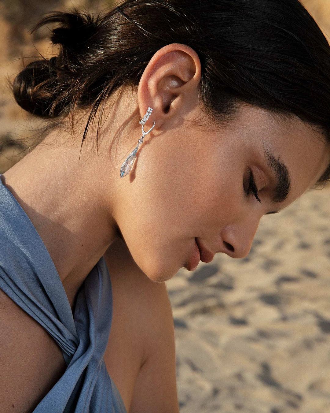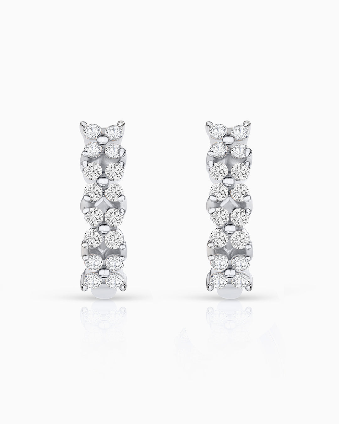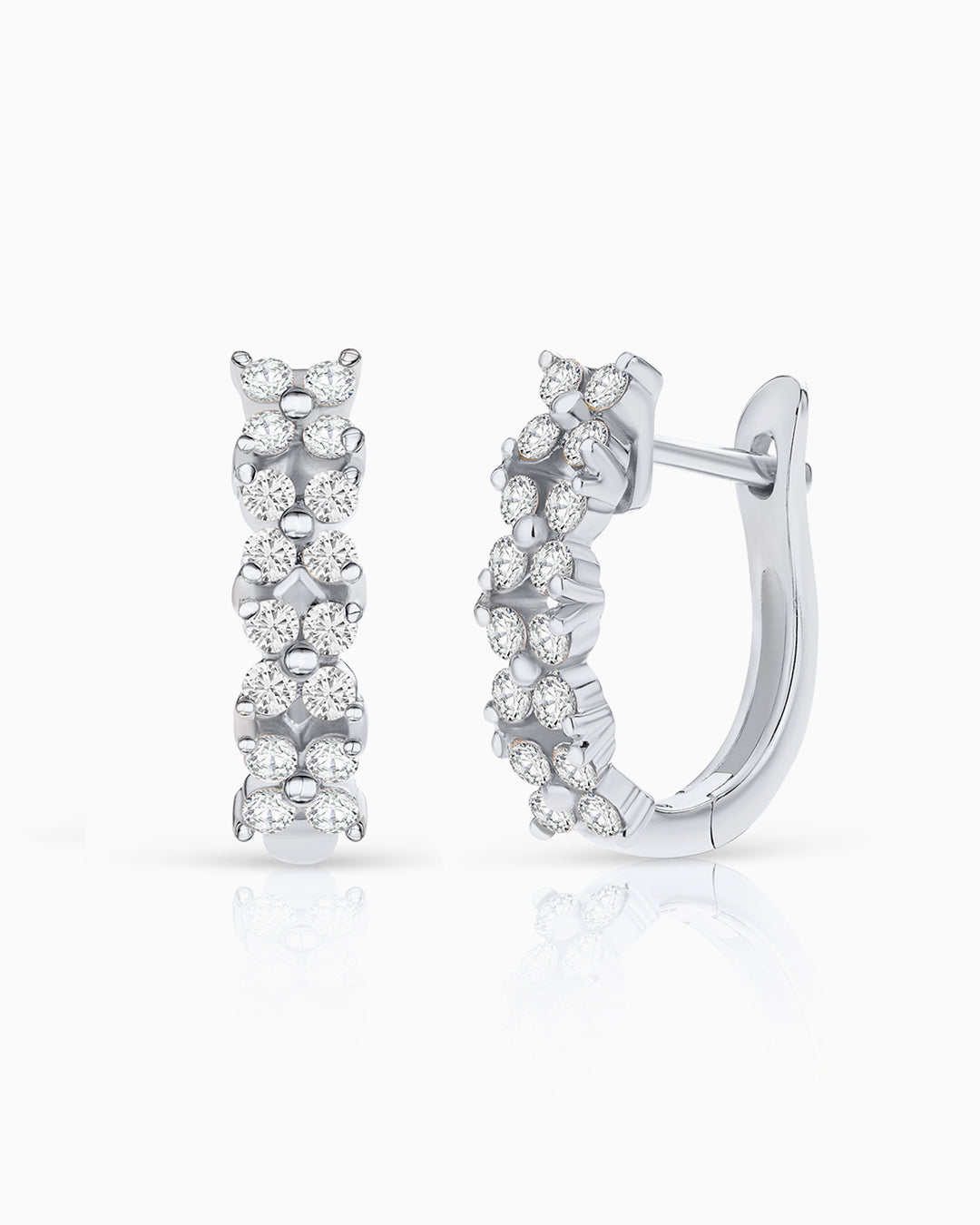 Brincos de diamante de jardim feitos em ouro branco 18 quilates. Os elegantes brincos Garden são inspirados em uma das peças mais icônicas da empresa; seu design traça um arco maravilhoso através da sobreposição de flores de diamante. Esses brincos com uma marcante sensibilidade romântica são um ícone atemporal. O formato maravilhoso desses brincos, juntamente com seu design intrincado, faz com que cada diamante brilhe de forma única, evocando um delicado aglomerado de flores. Possuem fecho catalão, o fecho mais seguro para esse tipo de brinco, contribuindo para sua estética completa. Pare de sonhar com elas e adicione-as à sua caixa de joias!Os brincos Garden estão disponíveis em três versões: ouro rosa 18 quilates, ouro amarelo e ouro branco.