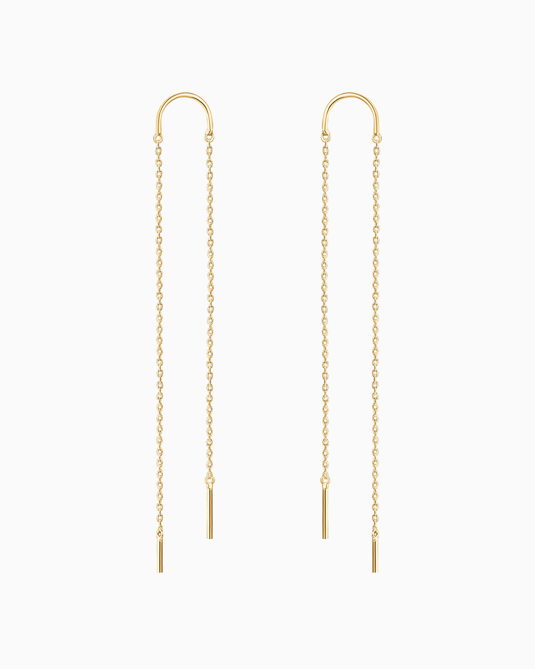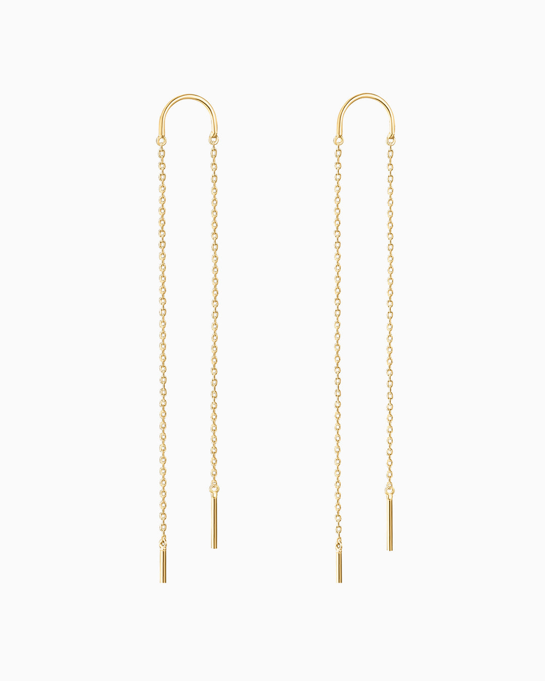 Brincos Infinite Bonds em ouro amarelo 18 quilates. Minimalistas e originais, os brincos Infinite Bonds dão um toque moderno a qualquer visual. Seu design combina linhas fluidas e formas suaves que dão movimento às correntes finas, criando uma declaração de estilo sutil e pessoal. Estes brincos confortáveis são feitos inteiramente de ouro 18 K com um sistema de inserção de tipo.enfiadoro que gera o efeito de uma cadeia sem fim. Descubra a beleza da simplicidade com brincos perfeitos para qualquer ocasião.