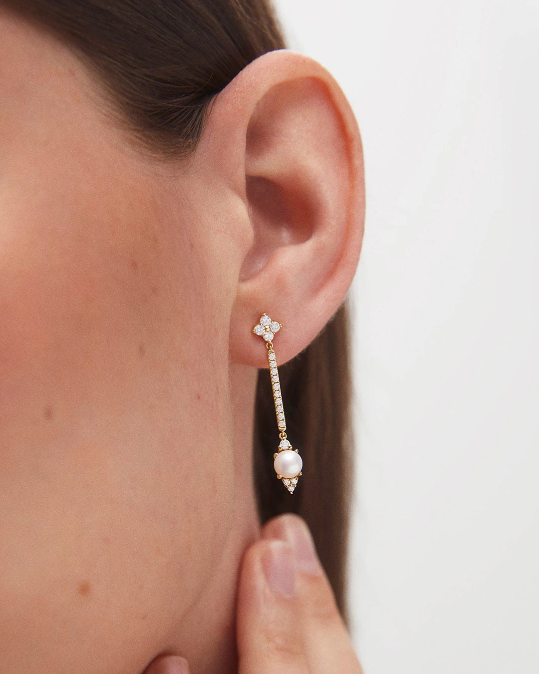 Brincos longos de pérolas e diamantes Midnight Holly em ouro amarelo 18K