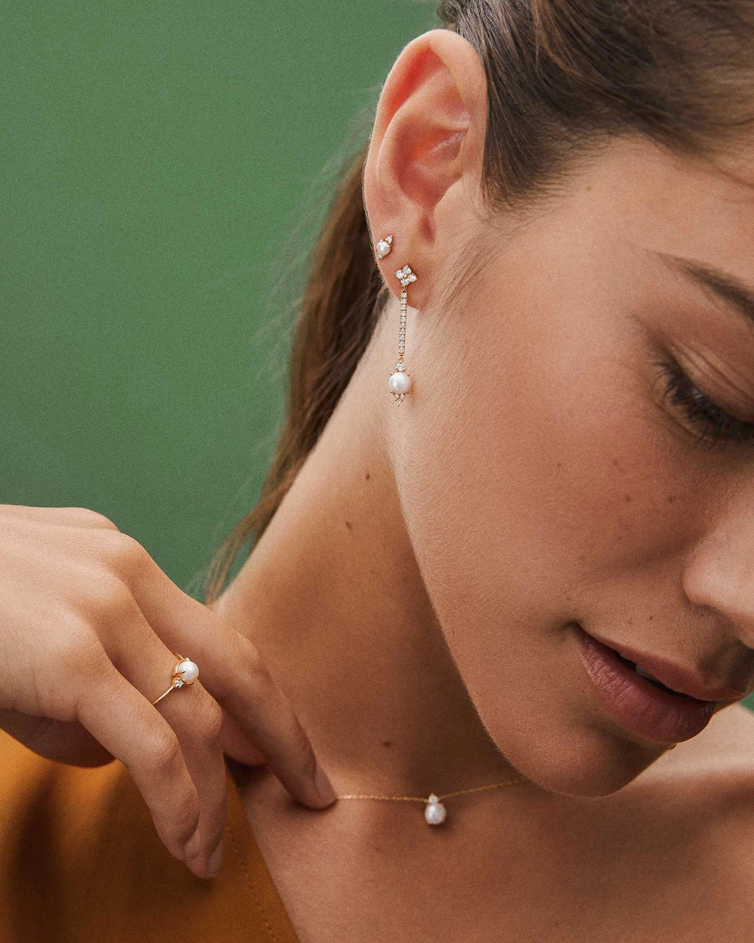 Brincos longos Midnight Holly feitos em ouro amarelo 18 quilates com pérolas e diamantes. A coleção Holly recebeu o nome da personagem icônica interpretada por Audrey Hepburn em Bonequinha de Luxo. Charmosa e sofisticada, ela permaneceu gravada na memória coletiva por suas combinações deslumbrantes de pérolas com diamantes, refletidas no design das criações de Holly. Como um emblema dojet setNova-iorquina da época, as famosas festas do filme são um símbolo do estilo de vida cosmopolita e glamouroso da anfitriã. Da mesma forma, os brincos Midnight Holly se destacam por suas linhas refinadas e uma seleção requintada de diamantes que realçam a beleza de cada pérola, dando-lhes um espírito tão grandioso quanto o desses eventos fabulosos. Descubra a essência da distinção através do brilho iridescente de uma joia cult, perfeita para iluminar as noites mais elegantes.