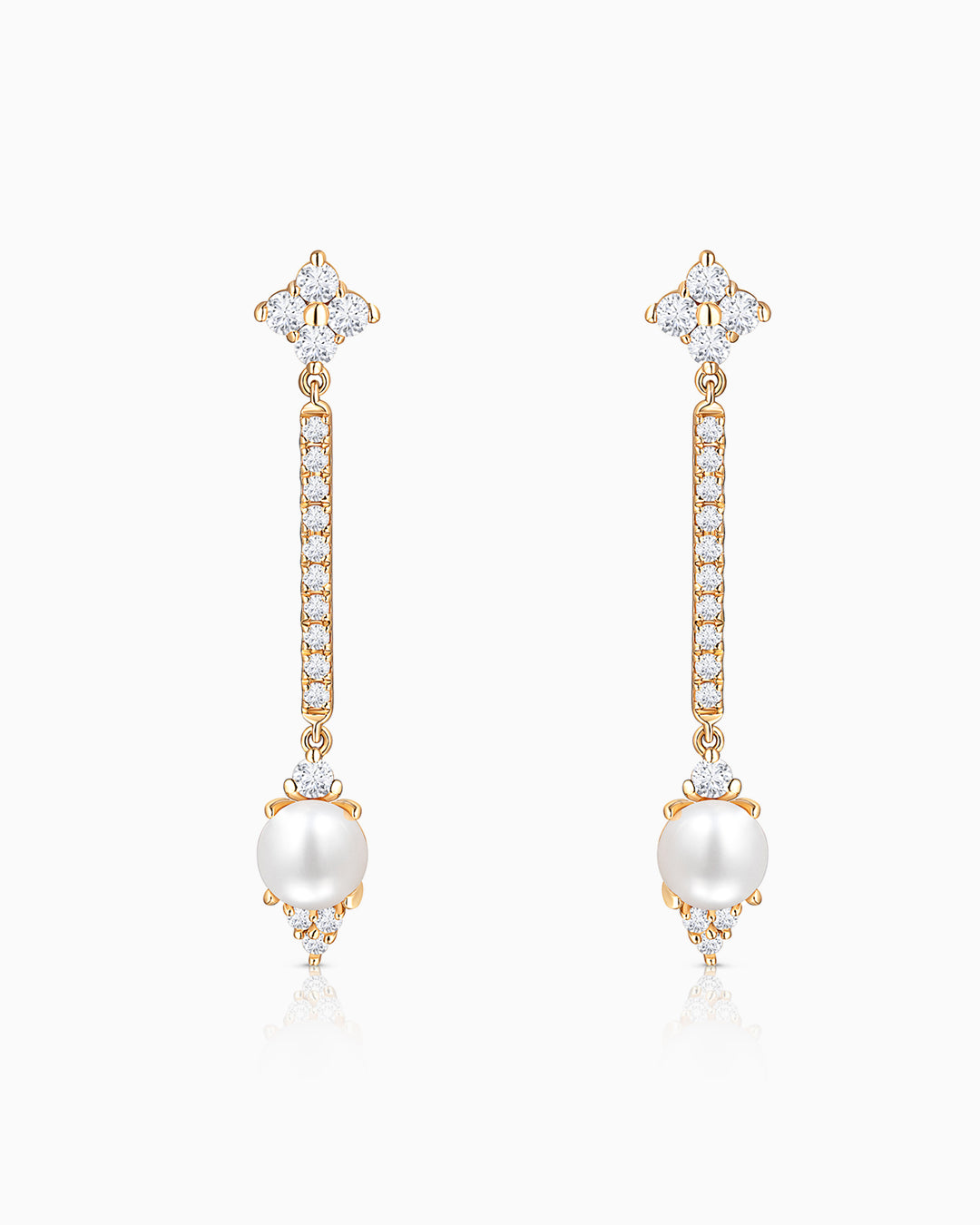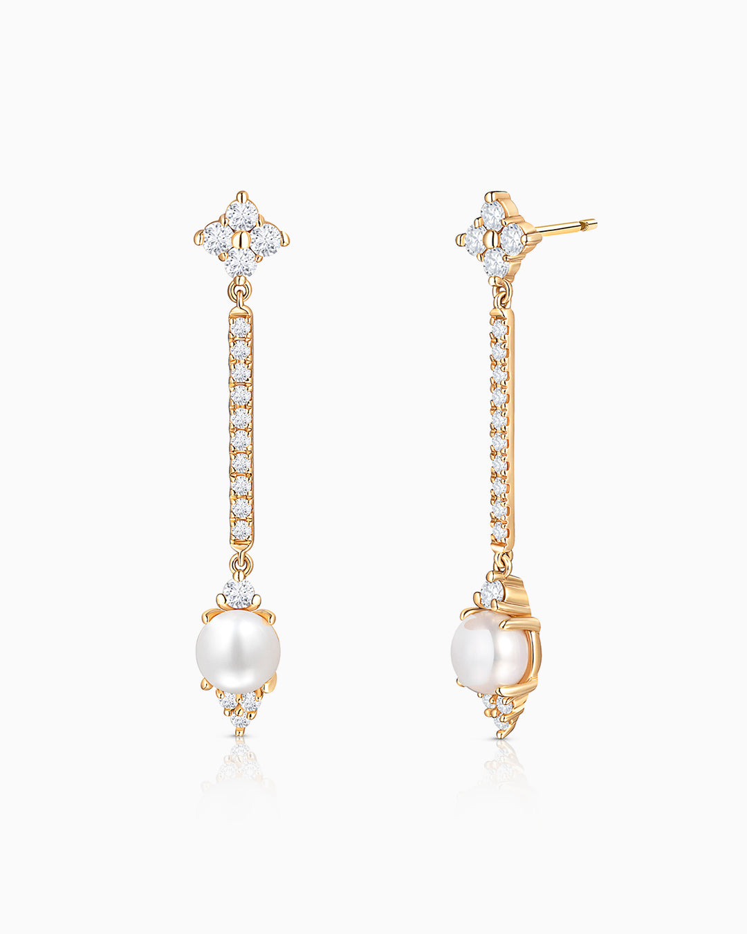 - Brincos longos de pérolas e diamantes Midnight Holly