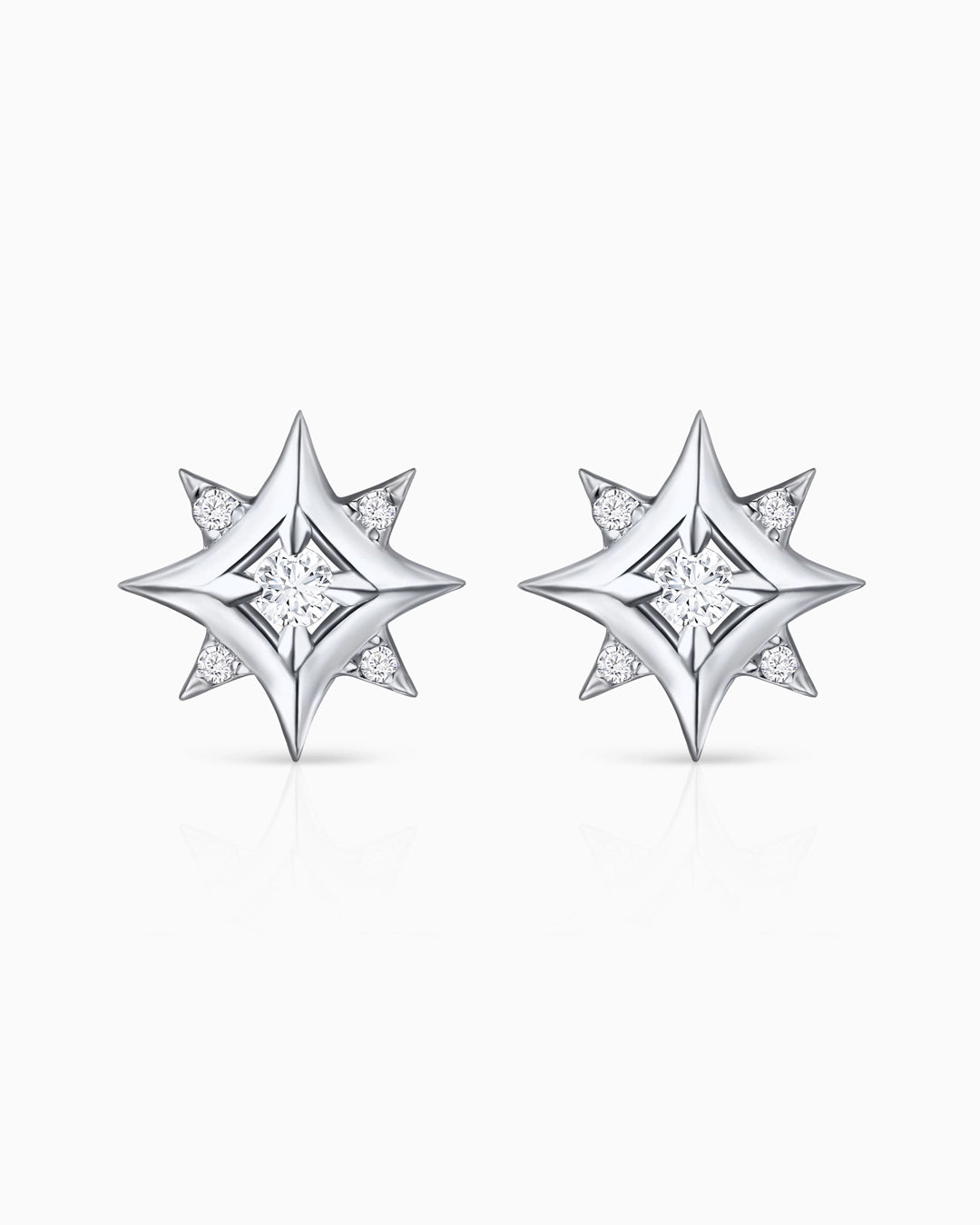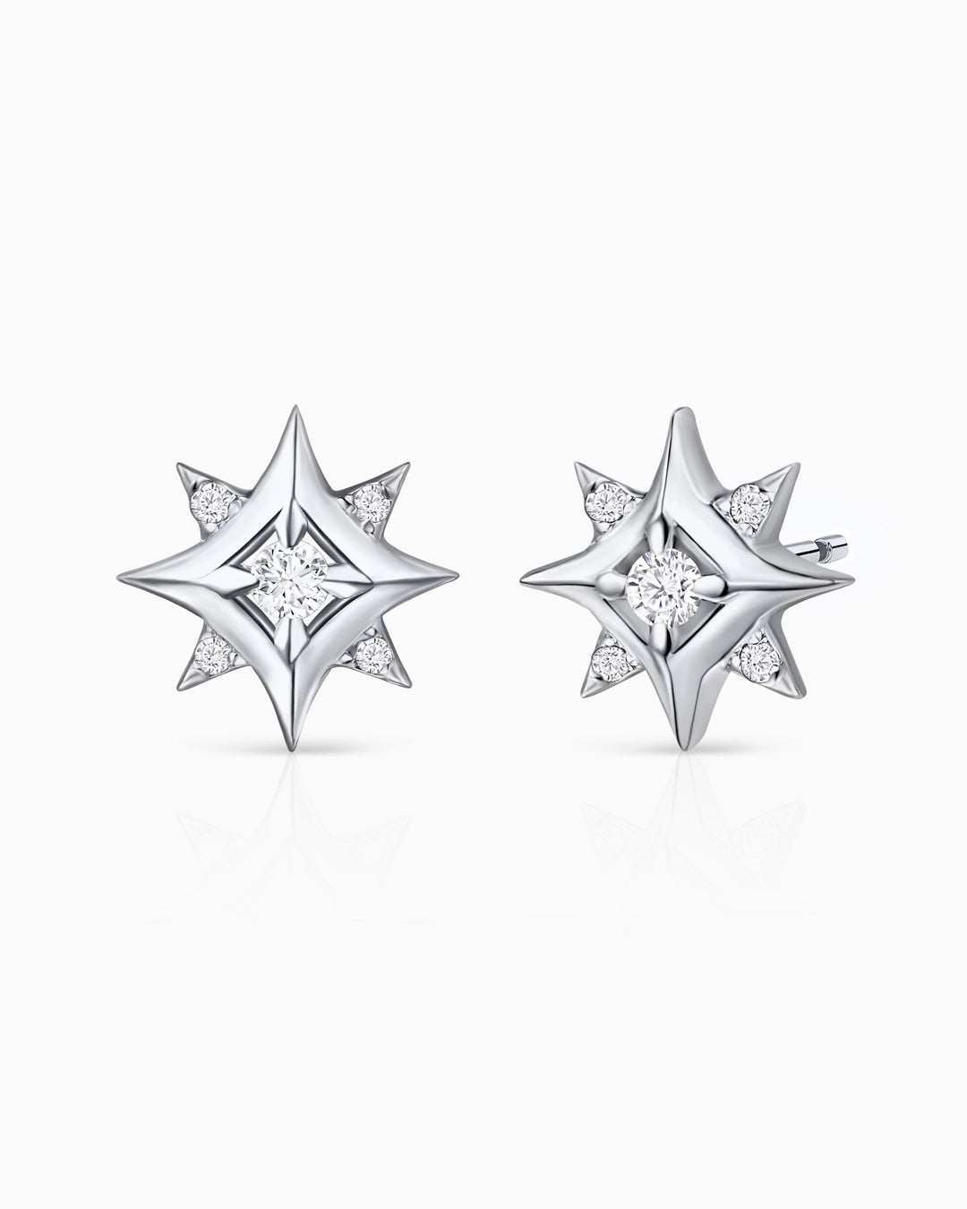 Brincos Mimosa Compass Rose em ouro branco 18 K