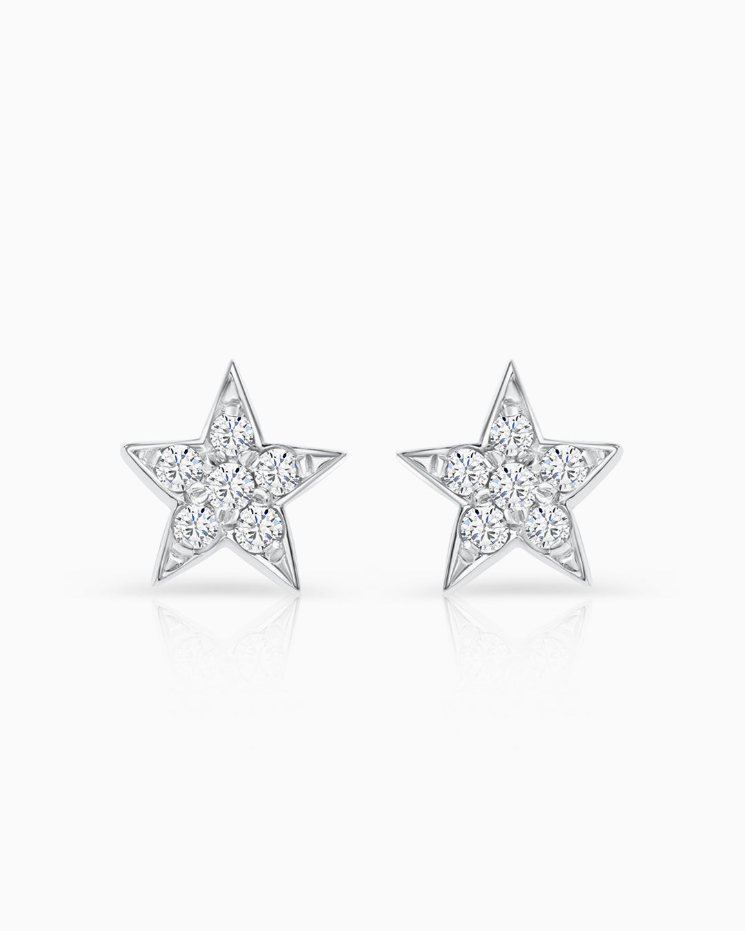 Brincos Moon Diamonds Star em ouro branco 18 K