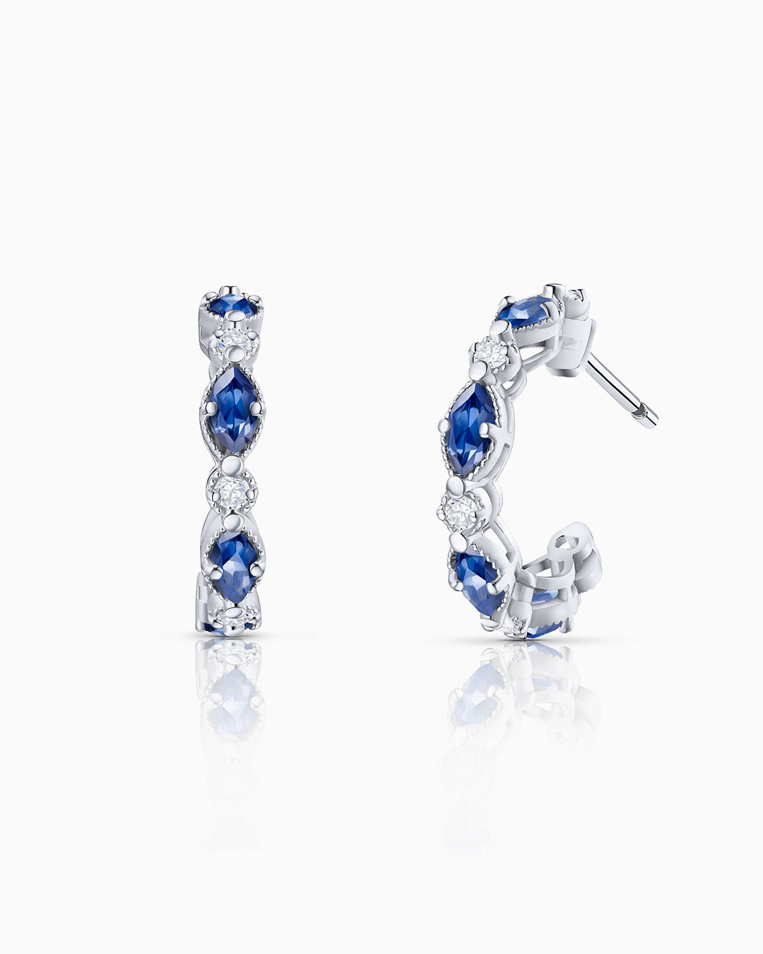 Brincos Ondine Safira e Diamante em Ouro Branco 18 K