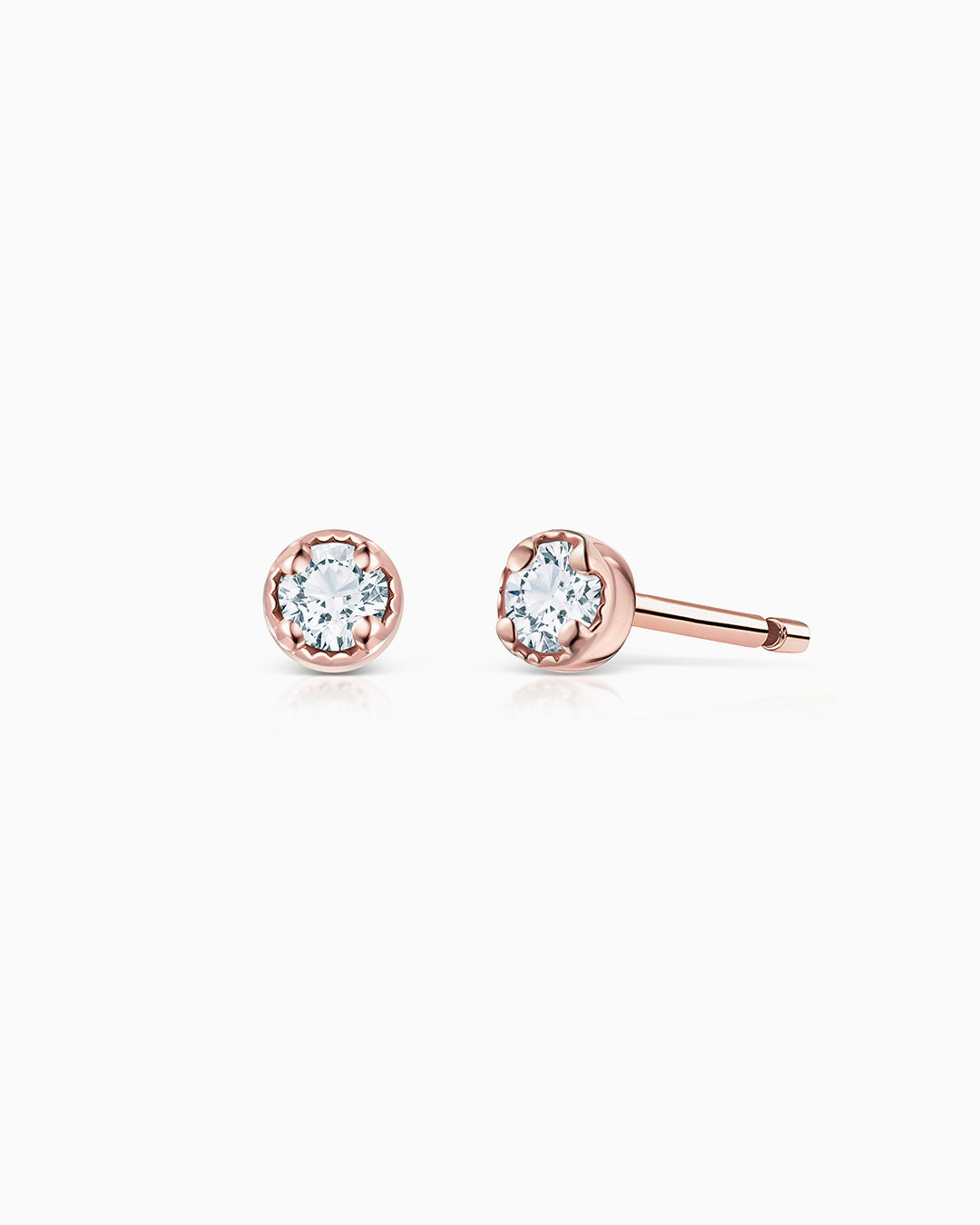 Brincos Petit Milgrain Diamond em ouro rosa 18K