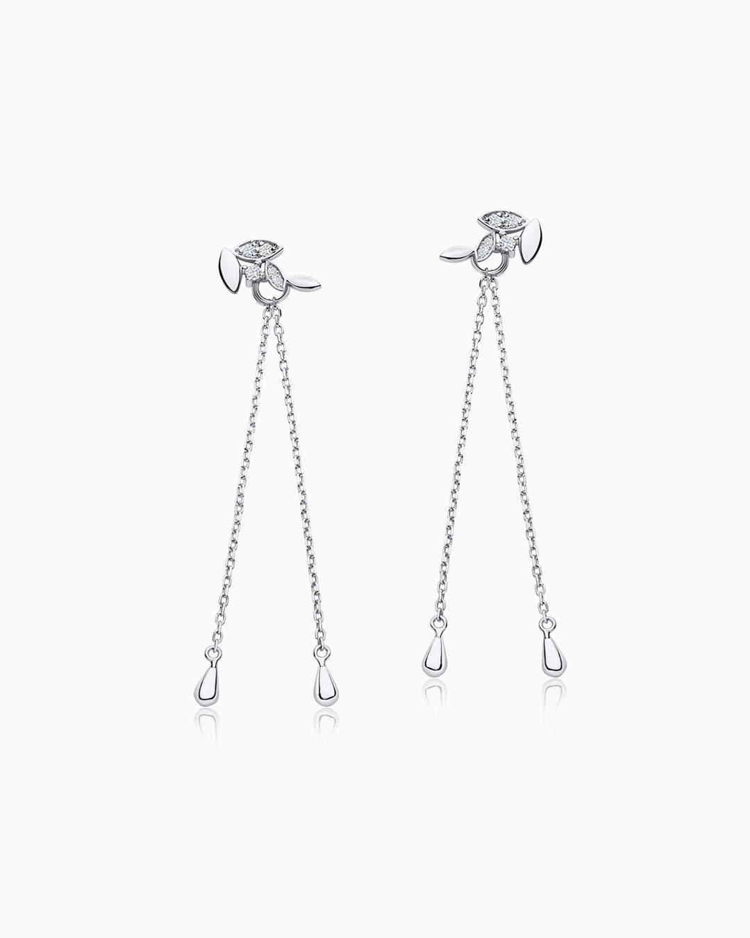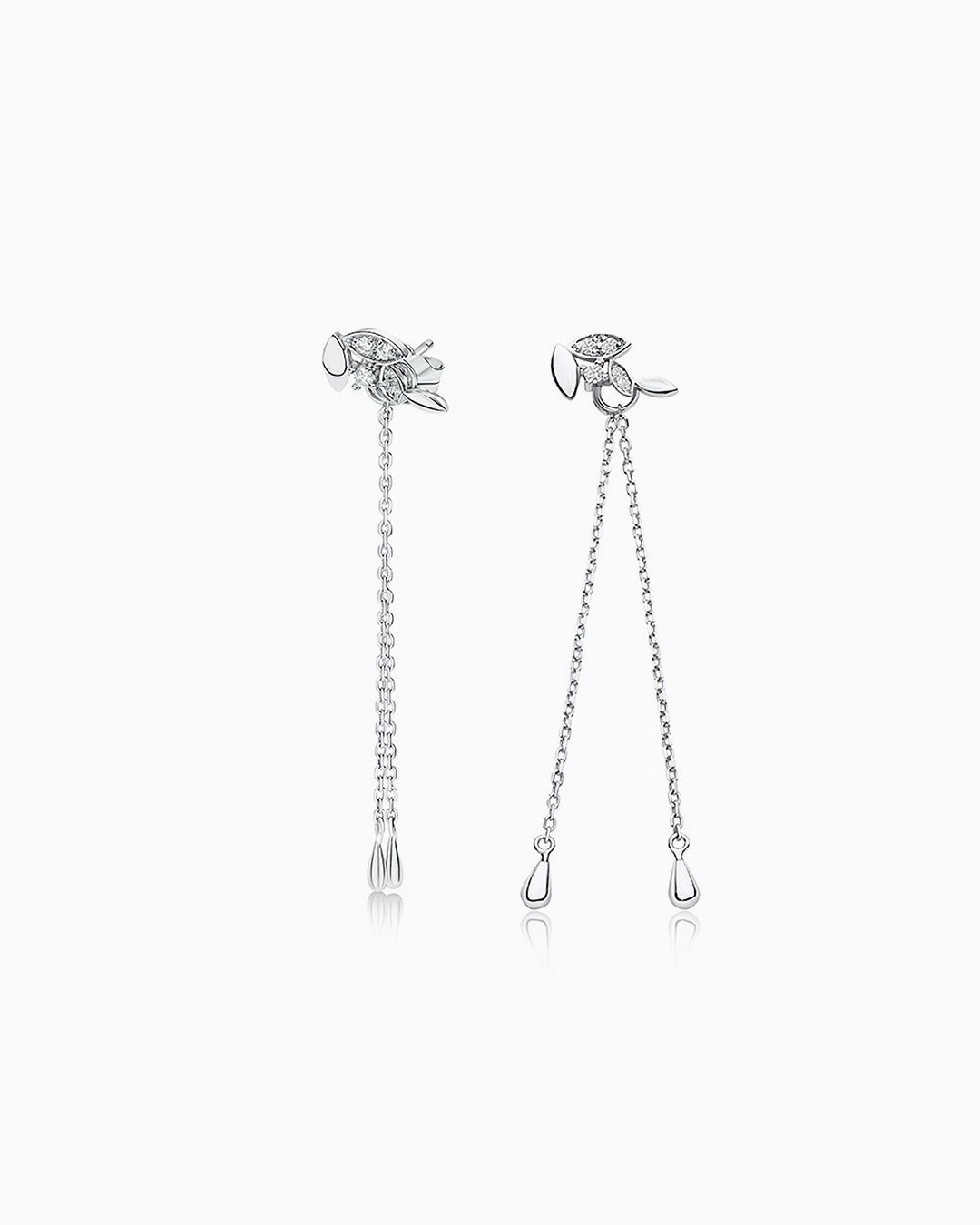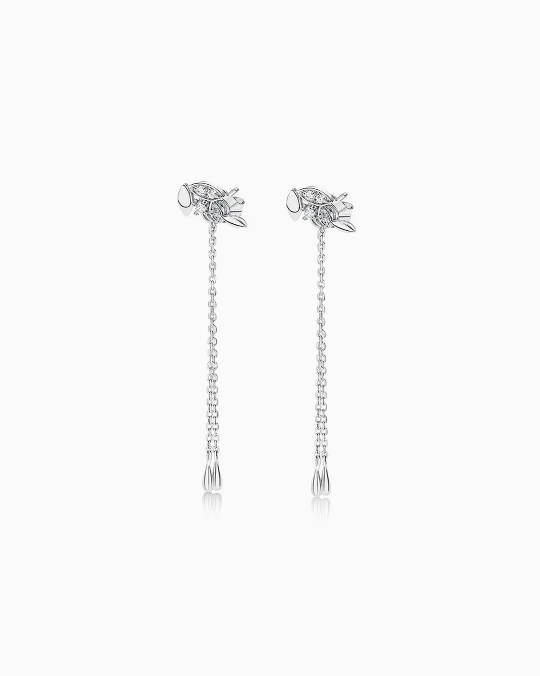 Brincos Petite Diamonds Leaf e Chain em ouro branco 18 K