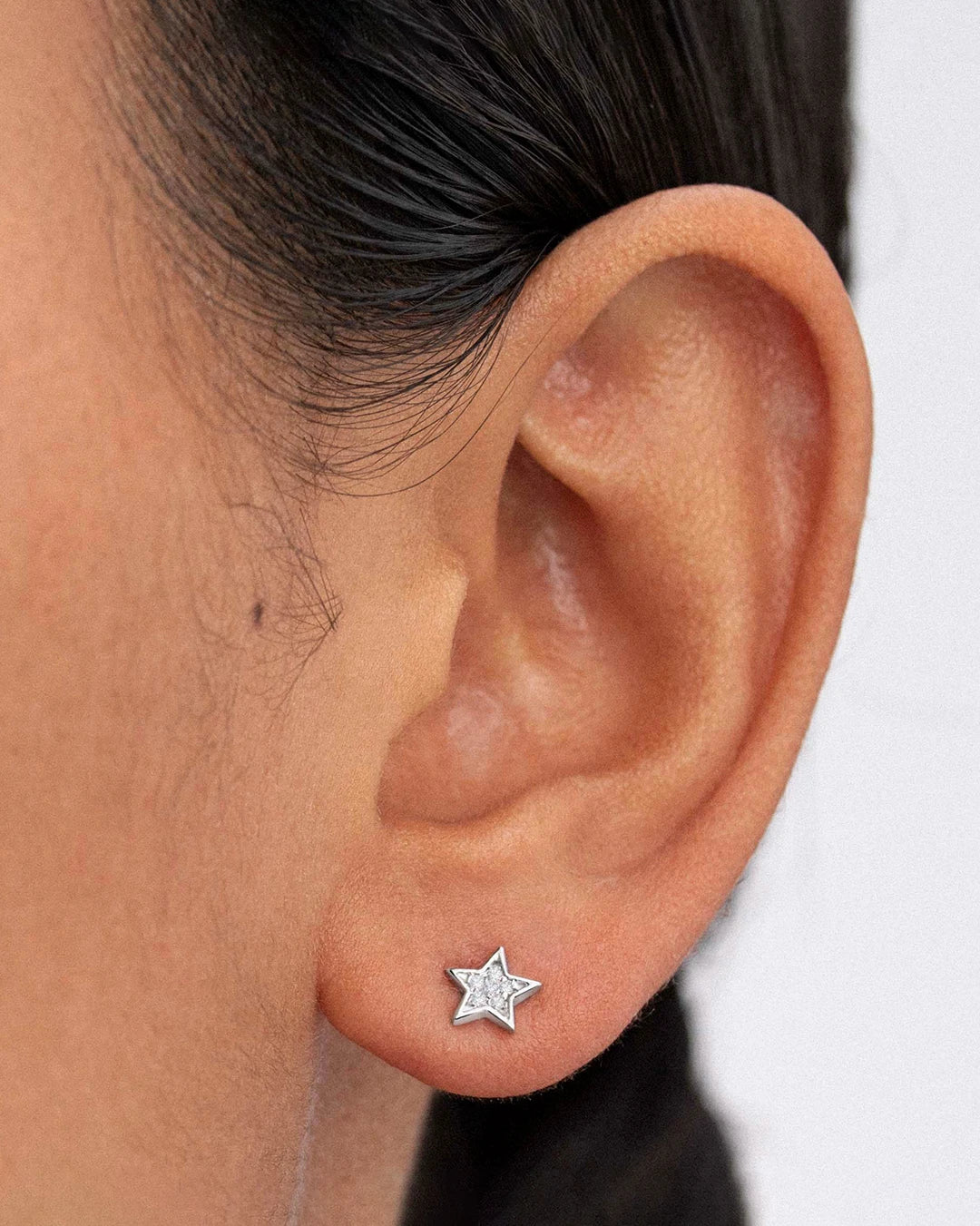 Brincos Petite Diamonds Moon & Star em ouro branco 18 quilates. Esses brincos cheios de doçura e delicadeza são a mais recente adição à coleção Petite Diamonds. Eles apresentam um design irregular de lua e estrela em forma de diamante e também têm o tamanho perfeito para se tornarem itens essenciais do dia a dia. São ideais para usar em pares ou para combinar na mesma orelha. São brincos super versáteis que vão te oferecer milhares de possibilidades de combinação. Eles têm um fecho de pressão ou porca borboleta que lhes dá a segurança e o conforto necessários para se tornarem brincos que você nem notará que está usando. Ideal para combinar com as gargantilhas Moon Diamonds.