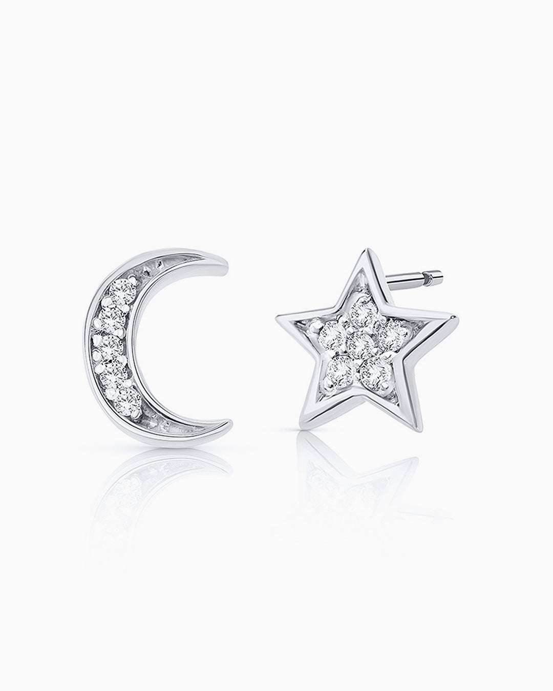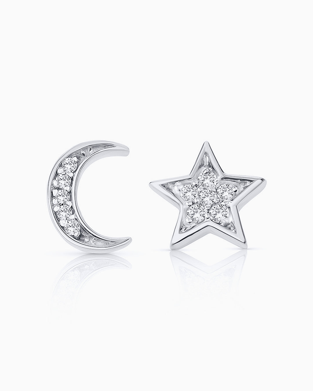 Brincos Petite Diamonds Moon & Star em ouro branco 18K