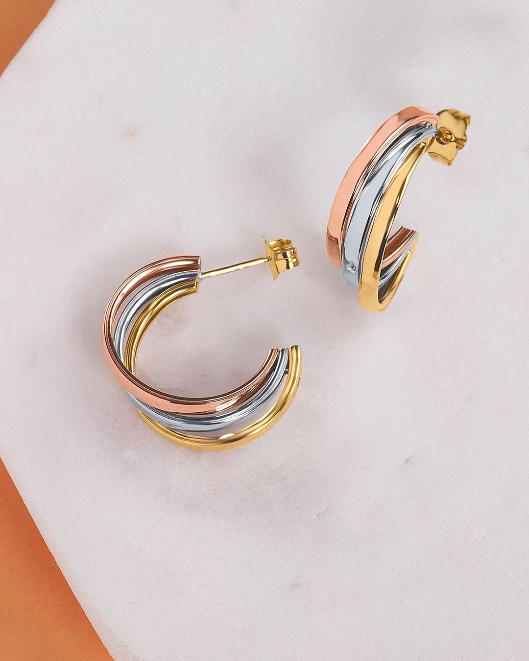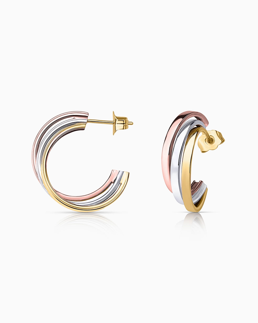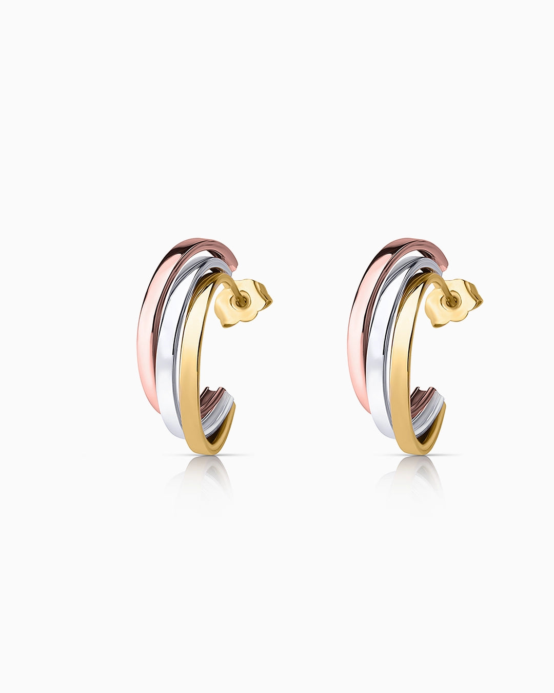 Brincos Tricolor Meia Argola em Ouro Branco, Amarelo e Rosa 18 K