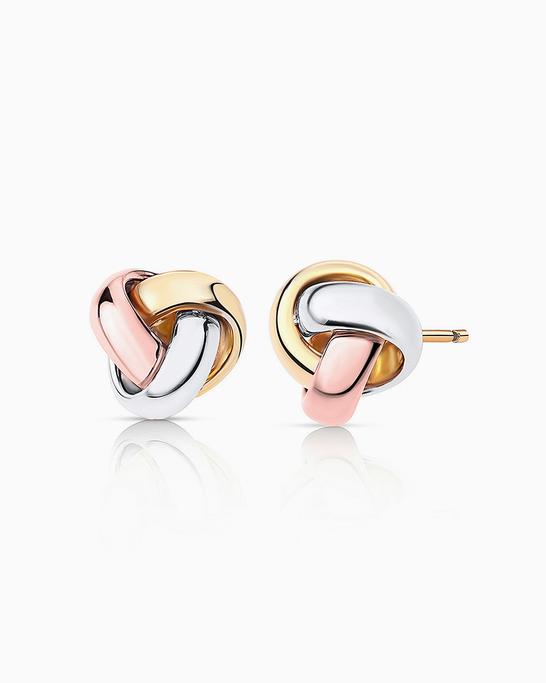 Os brincos Tricolore Nudo em ouro amarelo, rosa e branco 18 quilates são um clássico reinventado para a mulher de hoje. Eles são compostos por três aros lisos e interligados de ouro amarelo 18K, ouro rosa e ouro branco, criando o formato de um lindo e delicado nó. Elas representam a beleza do autêntico, uma joia atemporal que conseguiu provar que há magia na tradição.