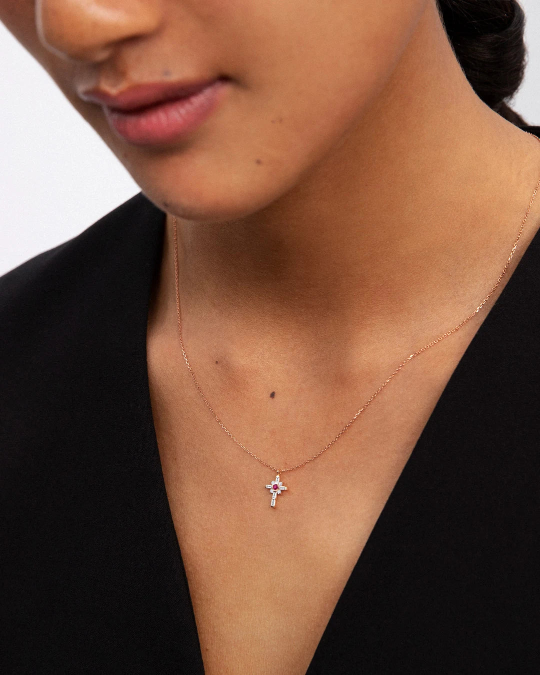 - Brinna Cross Choker com Diamantes e Rubi Central
