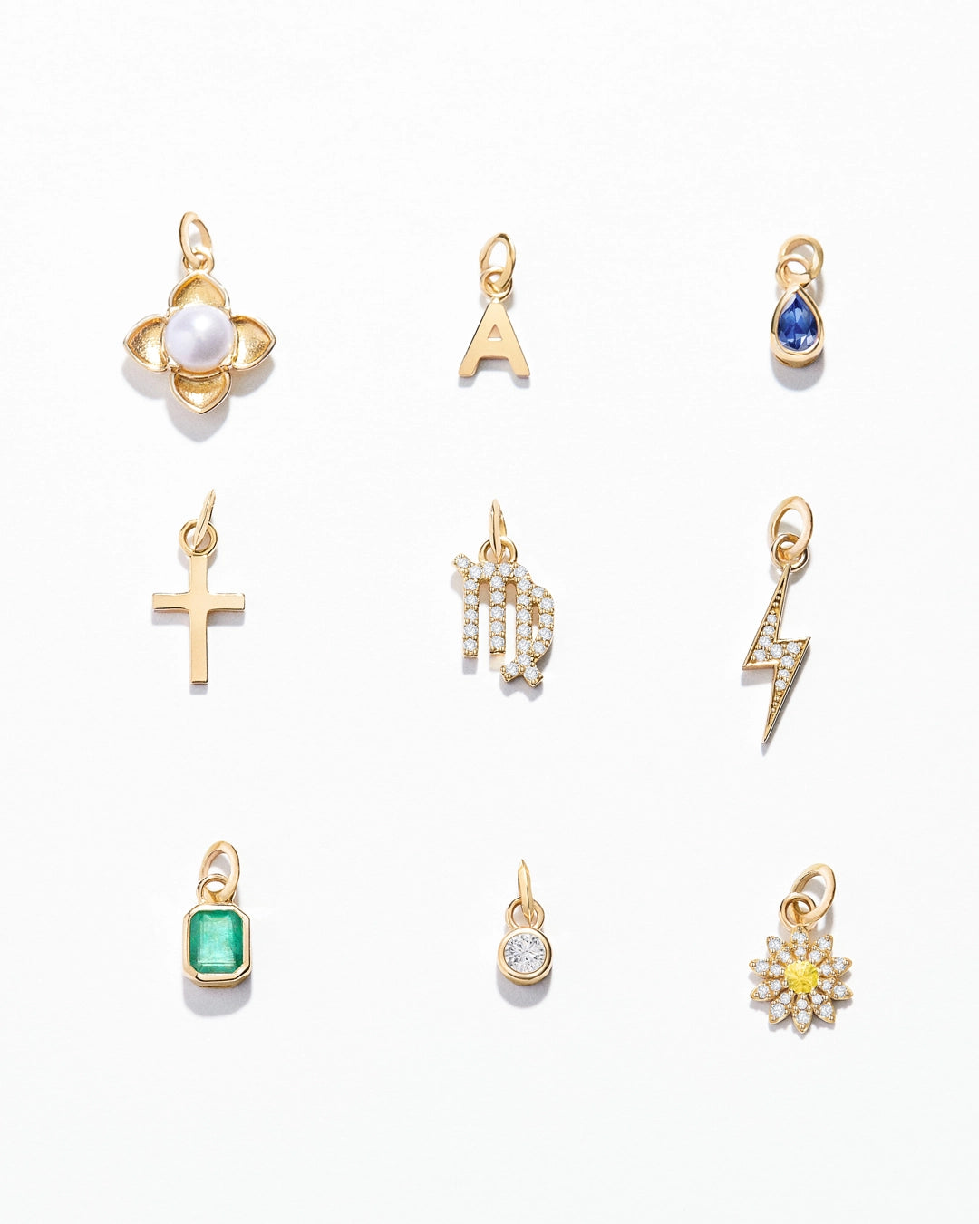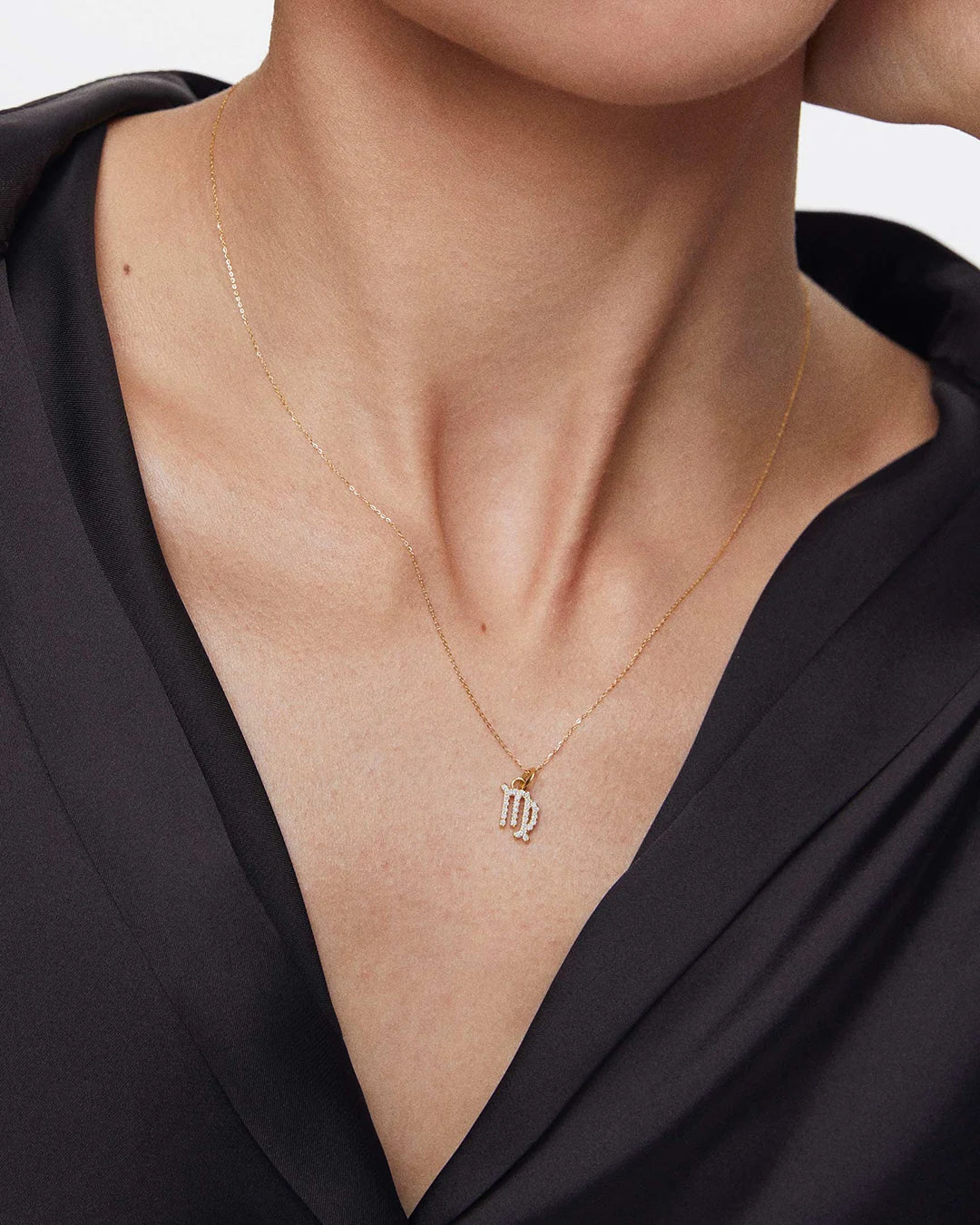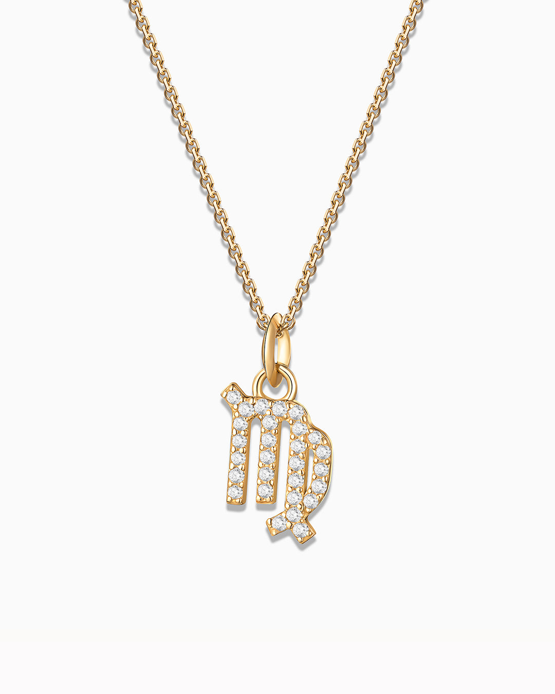 Charm Pingente de diamante do zodíaco de Virgem em ouro amarelo 18K