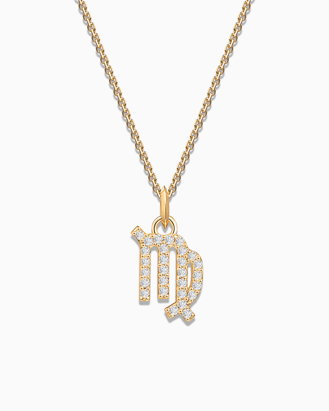 Pingente com símbolo do zodíaco de Virgem e diamante em ouro amarelo 18k. Cada um dos Luxury Char...