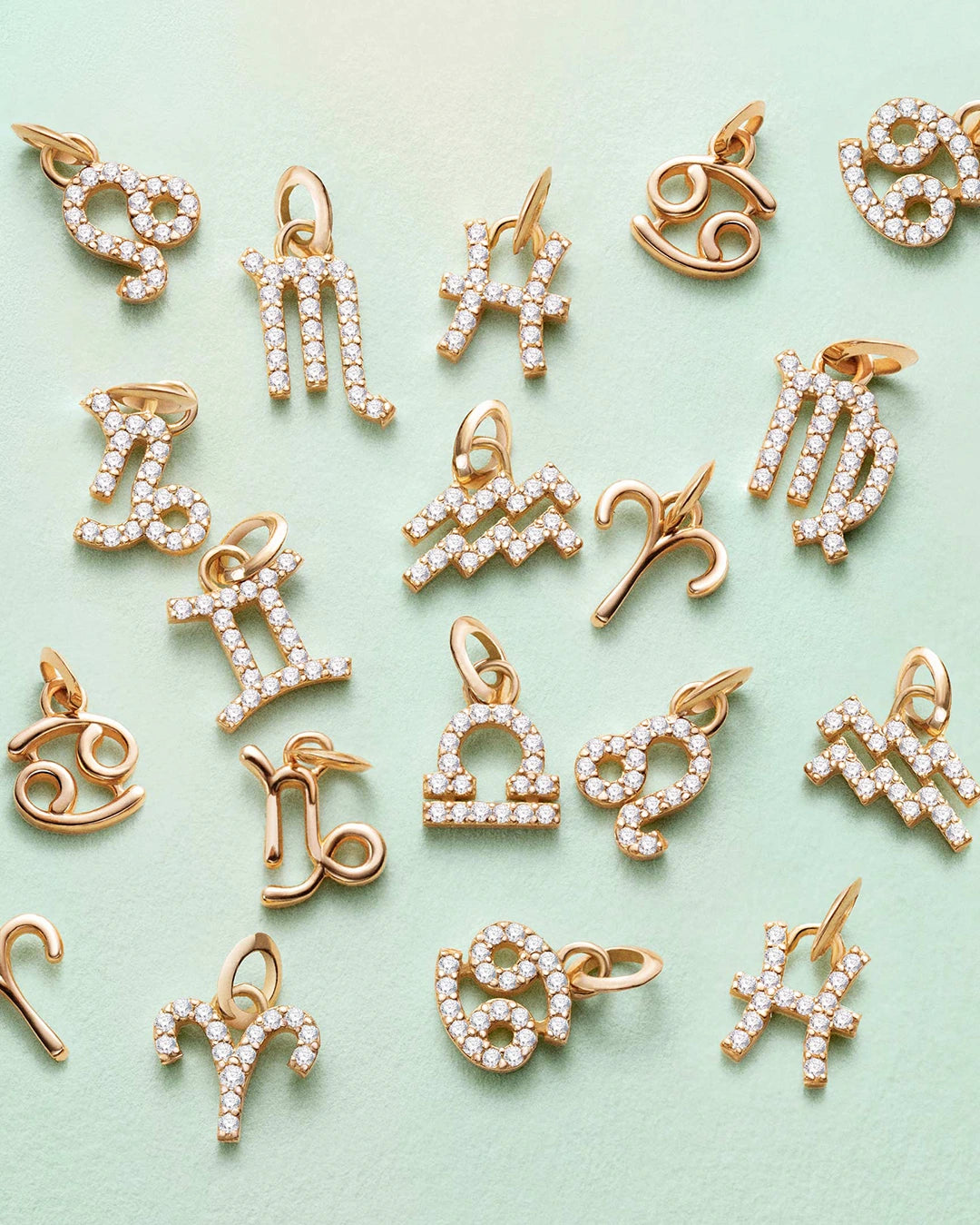 Charm com pingente de diamante Gemini Zodiac S em ouro amarelo 18k. Cada um dos Luxury Charms da ...