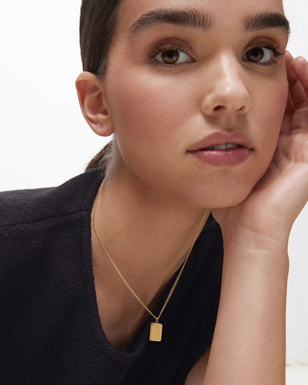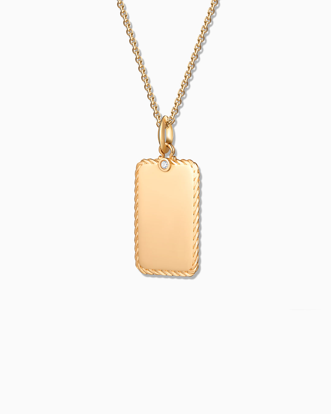 Pingente com medalha em forma de L e diamante em ouro amarelo 18K. Cada um dos Luxury Charms da Mumit é uma oportunidade de se conectar com suas memórias, seus sonhos mais profundos ou partes únicas de sua personalidade. Graças à durabilidade do ouro 18 quilates, este pequeno talismã de valor emocional incalculável acompanhará você por toda a vida. Além disso, o anel é um design exclusivo da Mumit, desenvolvido para obter um visual harmonioso ao combinar vários pingentes na mesma corrente. Comece sua coleção e explore o lado mais pessoal do mundo das joias. O acabamento liso desta medalha é a superfície perfeita para adicionar a gravação de sua escolha.
