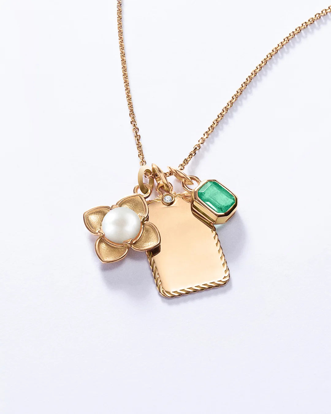 Pingente com medalha em forma de L e diamante em ouro amarelo 18K. Cada um dos Luxury Charms da M...