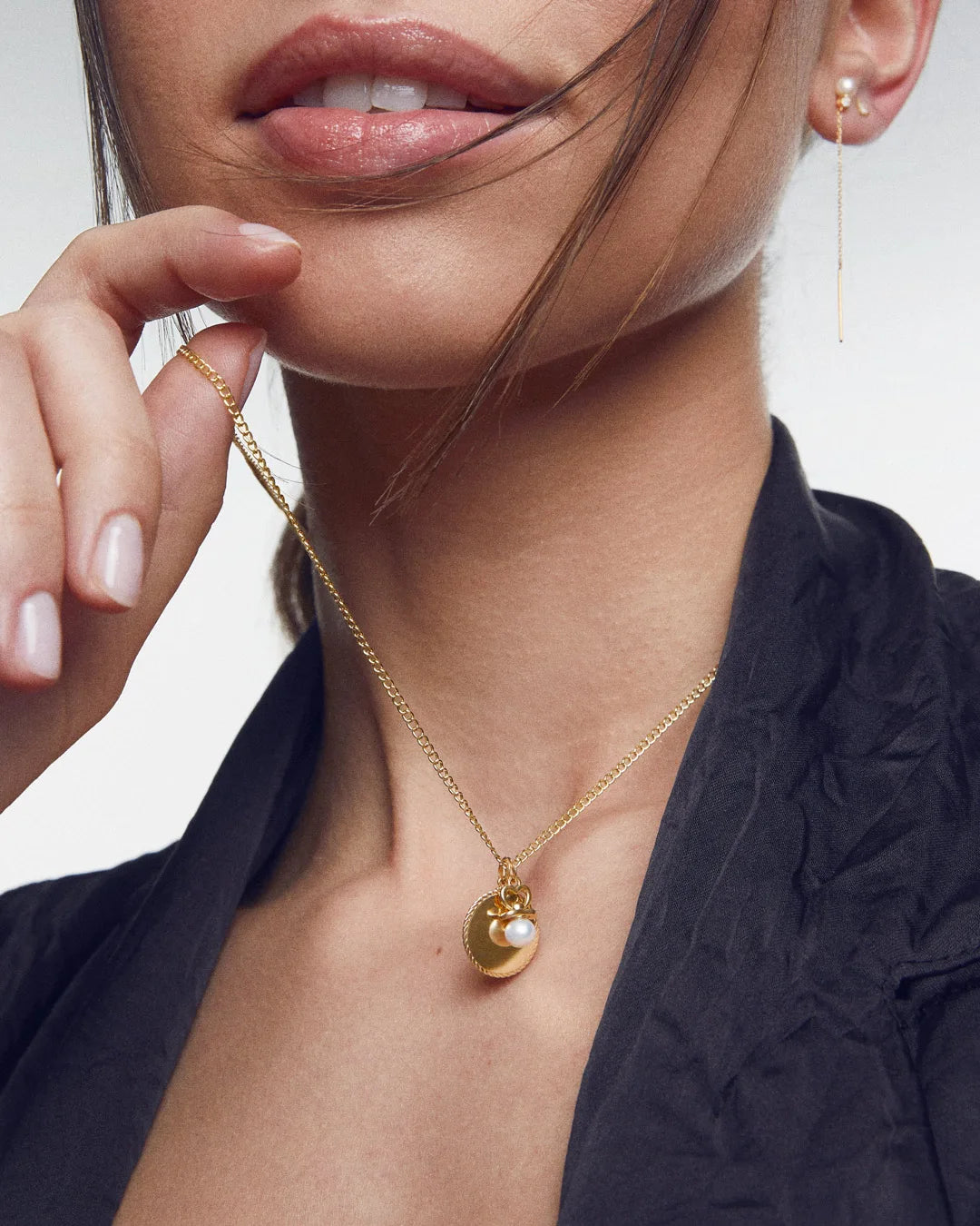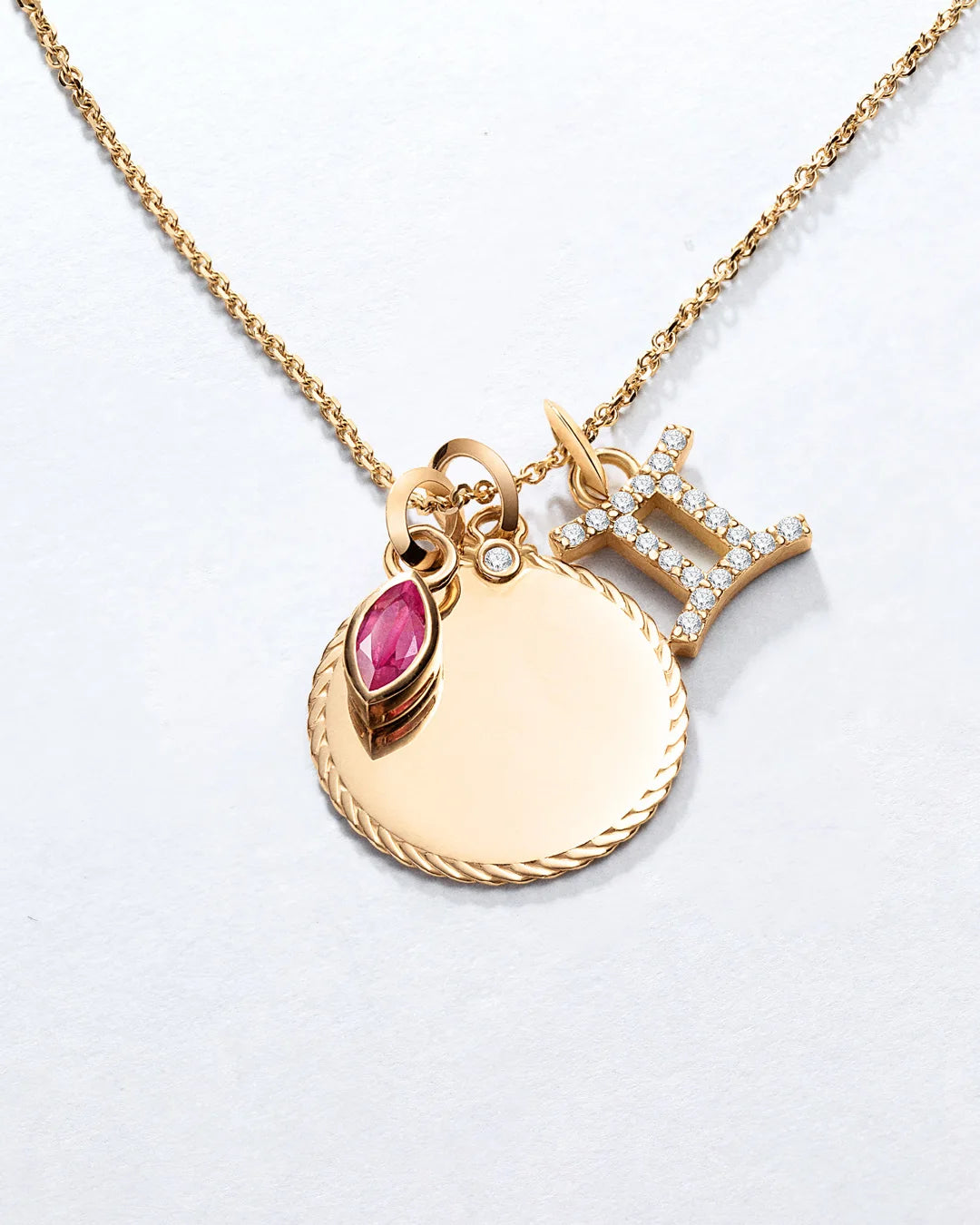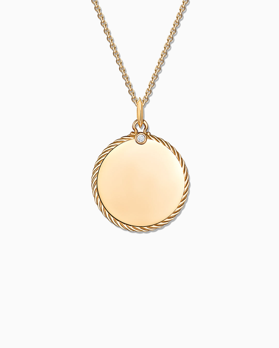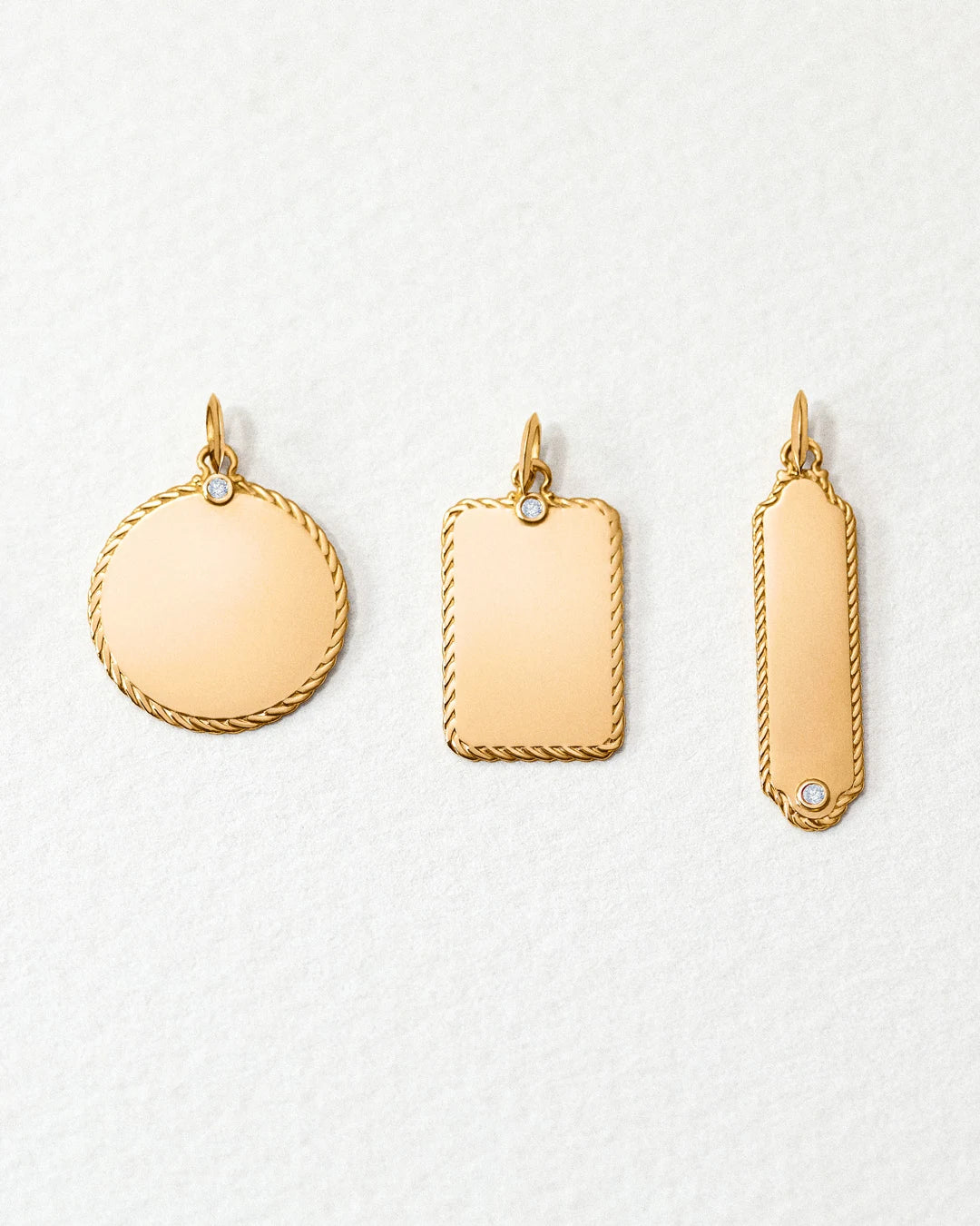 Charm Pingente de medalha redonda de diamante em ouro amarelo 18K L