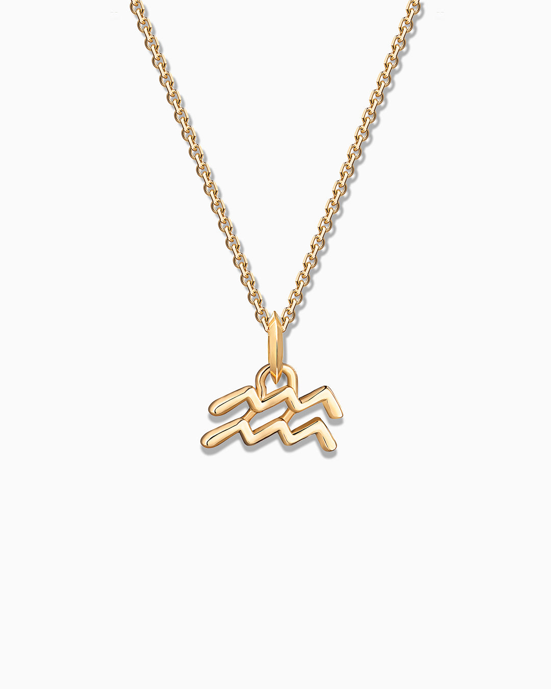 Charm com símbolo do zodíaco de Aquário em ouro amarelo 18K. Cada um dos Luxury Charms da Mumit é uma oportunidade de se conectar com suas memórias, seus sonhos mais profundos ou partes únicas de sua personalidade. Graças à durabilidade do ouro 18 quilates, este pequeno talismã de valor emocional incalculável acompanhará você por toda a vida. Além disso, o anel é um design exclusivo da Mumit, desenvolvido para obter um visual harmonioso ao combinar vários pingentes na mesma corrente. Comece sua coleção e explore o lado mais pessoal do mundo das joias. Aquário é um símbolo de: inovação, altruísmo, intelecto, autossuficiência, idealismo.
