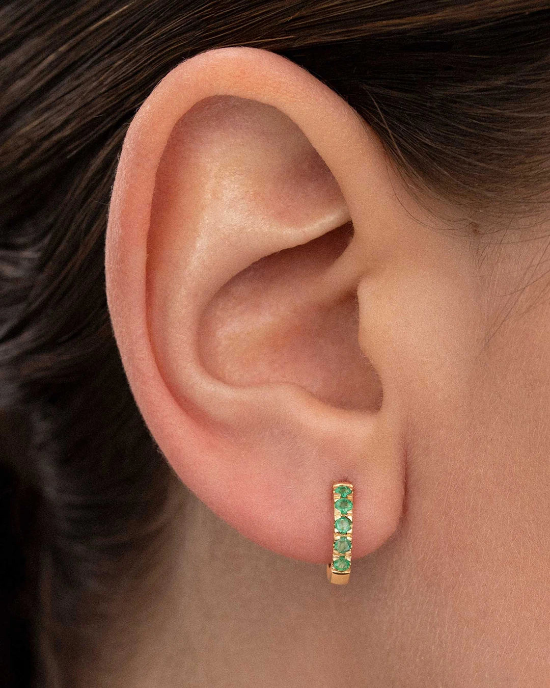 Brinco piercing Eternity Colors Bold com esmeraldas cravejadas em ouro amarelo 18K. Projetado em ...