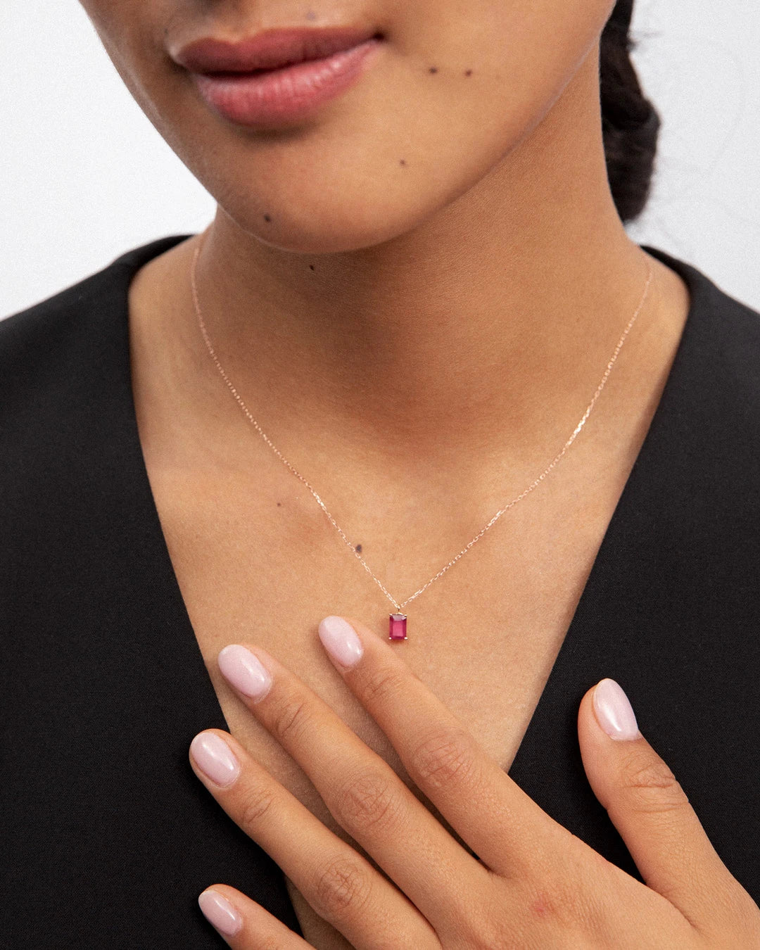Gargantilha Baguette Ruby em ouro rosa 18K