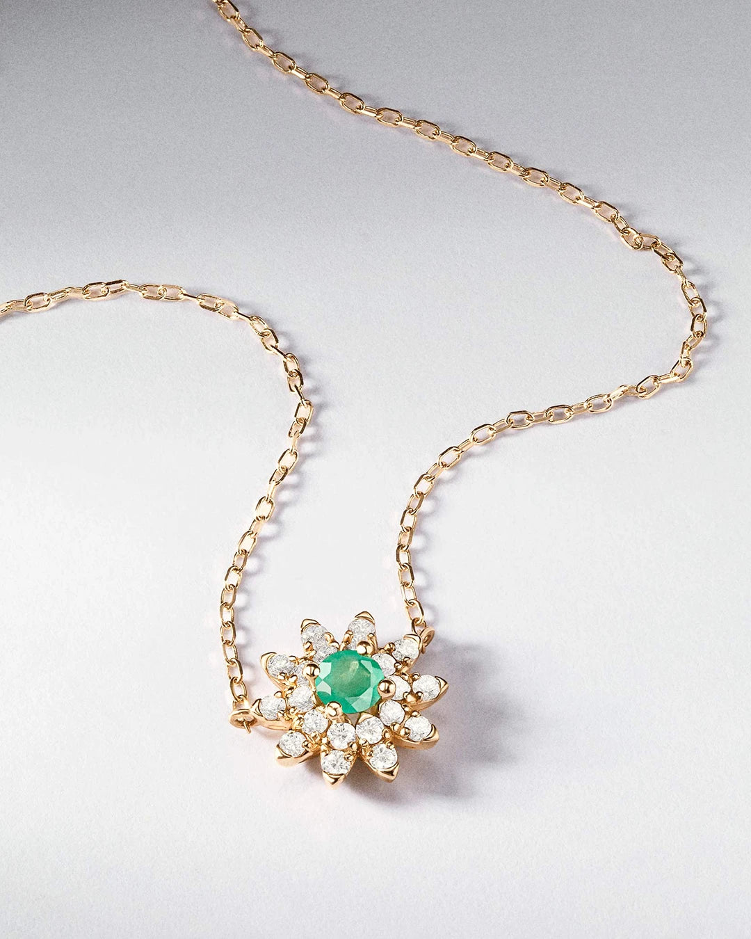 Gargantilha de esmeralda e diamante de Florença feita em ouro amarelo 18 quilates. Florença recebeu esse nome em homenagem à famosa cidade italiana, famosa por sua tradição de ourivesaria que remonta aos tempos medievais. Esta coleção é inspirada nas joias que podem ser vistas em alguns dos retratos mais famosos da Galeria Uffizi, em Florença. Nelas, as damas renascentistas da cidade aparecem adornadas com desenhos florais e as mais finas pedras preciosas da época. Nossos designers queriam refletir a beleza e a tradição dessas joias emblemáticas de Florença por meio de uma gargantilha em formato de margarida. Você reconhecerá o toque fresco e original de Mumit na inversão das cores tradicionalmente associadas a essas delicadas flores: o amarelo do ouro é encontrado no caule, o branco dos diamantes é mantido nas pétalas, enquanto o verde vibrante da esmeralda se torna o centro. Descubra a magia da Toscana em flor e eleve qualquer look com uma joia que exala história e requinte.