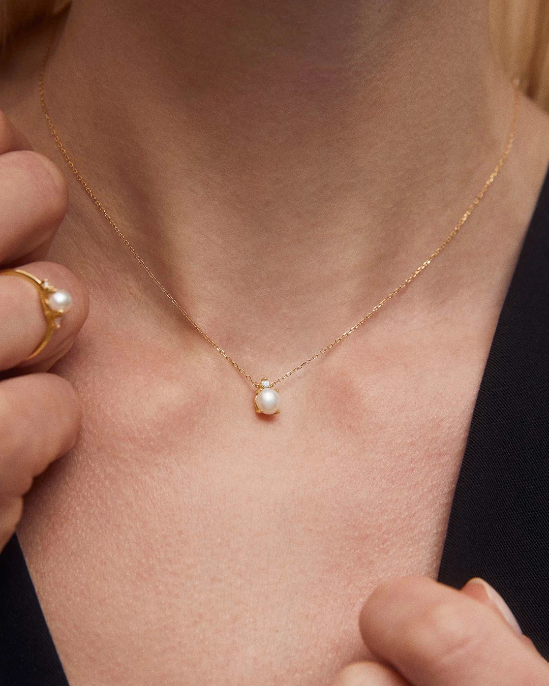 Gargantilha Holly Pearl e Diamante em Ouro Amarelo 18K