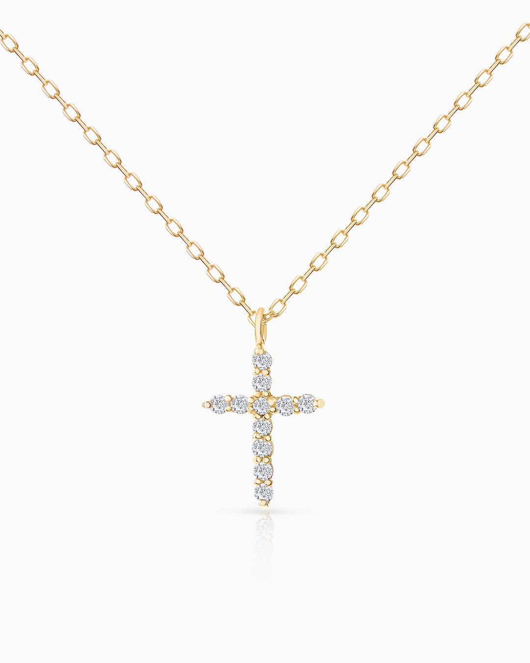 Gargantilha INA Diamond Cross feita em ouro amarelo 18 K. Tradição, artesanato e estética contemp...