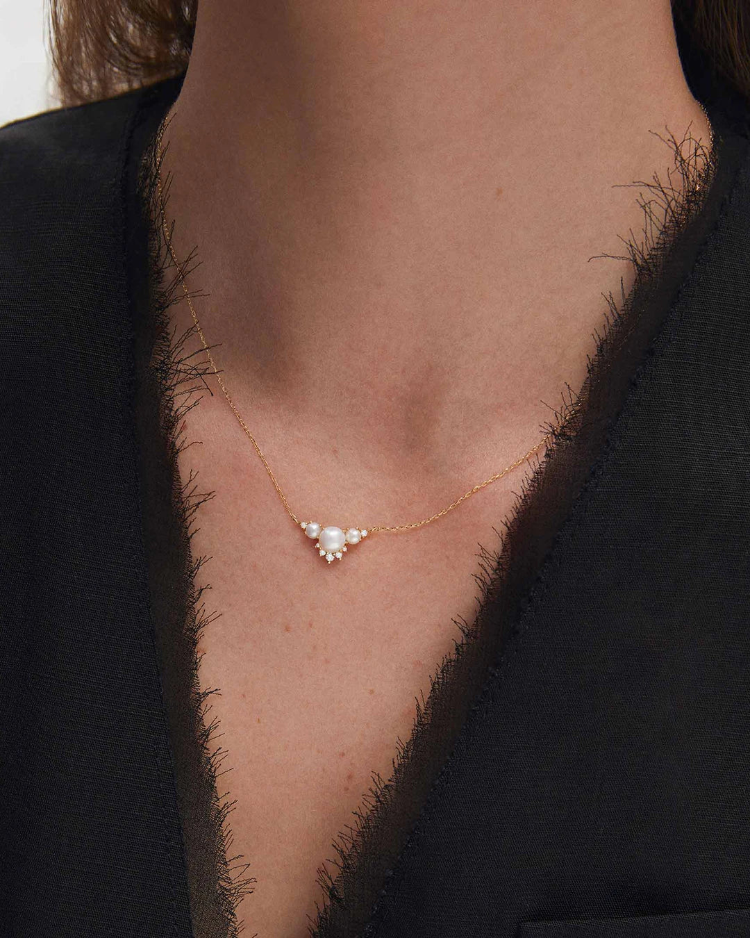 Gargantilha Midnight Holly Pearl e Diamond em ouro amarelo 18K