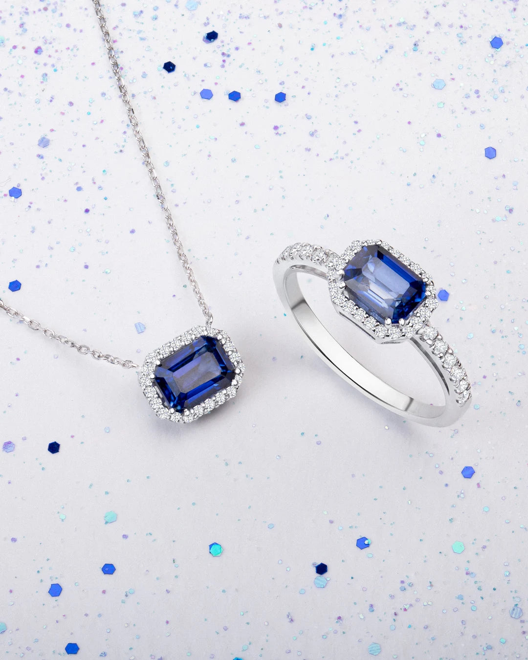 Gargantilha Octo Diamonds com uma safira central especial com lapidação octogonal e diamantes em ...