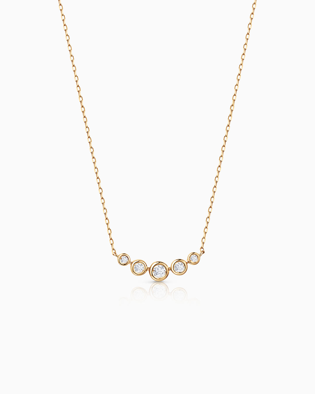 A gargantilha Origine Arquée da Mumit homenageia o bisel, a primeira técnica de configuração na tradição da ourivesaria. Seu design gradiente se distingue por um arco de diamantes engastados na luneta que parece fluir perfeitamente, alcançando um equilíbrio perfeito entre técnica e criatividade. As formas arredondadas que caracterizam esse tipo de ambiente reforçam a continuidade do design e, ao mesmo tempo, conferem um toque moderno inconfundível. Como um fio de luz, a pureza do ouro 18kt e o brilho dos diamantes naturais se unem em uma declaração de sofisticação que transcende tendências. Uma peça essencial que celebra o legado da joalheria fina, reinterpretando-o por meio de uma estética refinada e contemporânea.