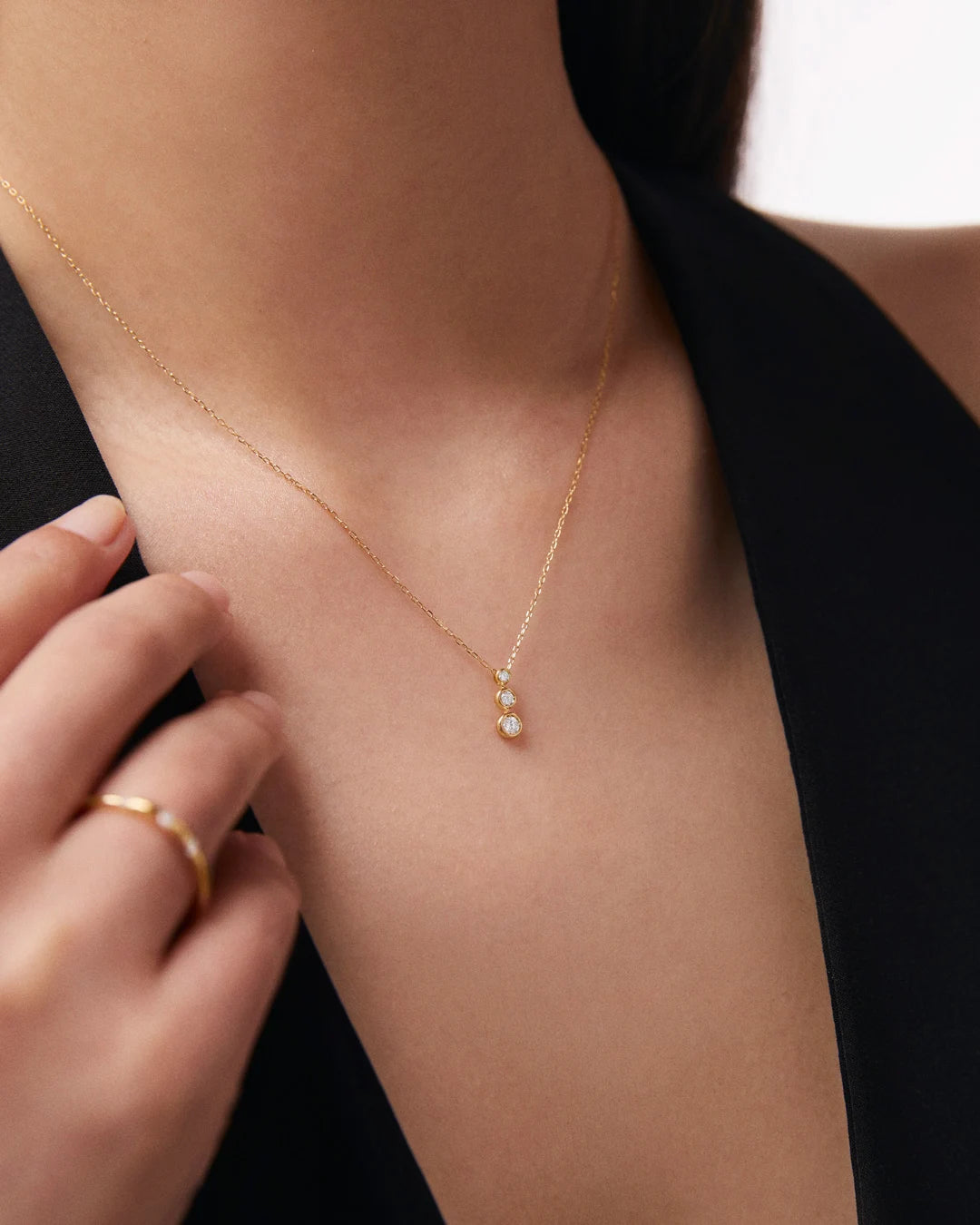 A gargantilha Origine da Mumit homenageia o bisel, a primeira técnica de configuração na tradição da ourivesaria. Seu design em estilo gradiente se distingue por uma sucessão de diamantes engastados na moldura que parecem fluir perfeitamente, alcançando um equilíbrio perfeito entre técnica e criatividade. As formas arredondadas que caracterizam esse tipo de ambiente reforçam a continuidade do design e, ao mesmo tempo, conferem um toque moderno inconfundível. Como um fio de luz, a pureza do ouro 18kt e o brilho dos diamantes naturais se unem em uma declaração de sofisticação que transcende tendências. Uma peça essencial que celebra o legado da joalheria fina, reinterpretando-o por meio de uma estética refinada e contemporânea.